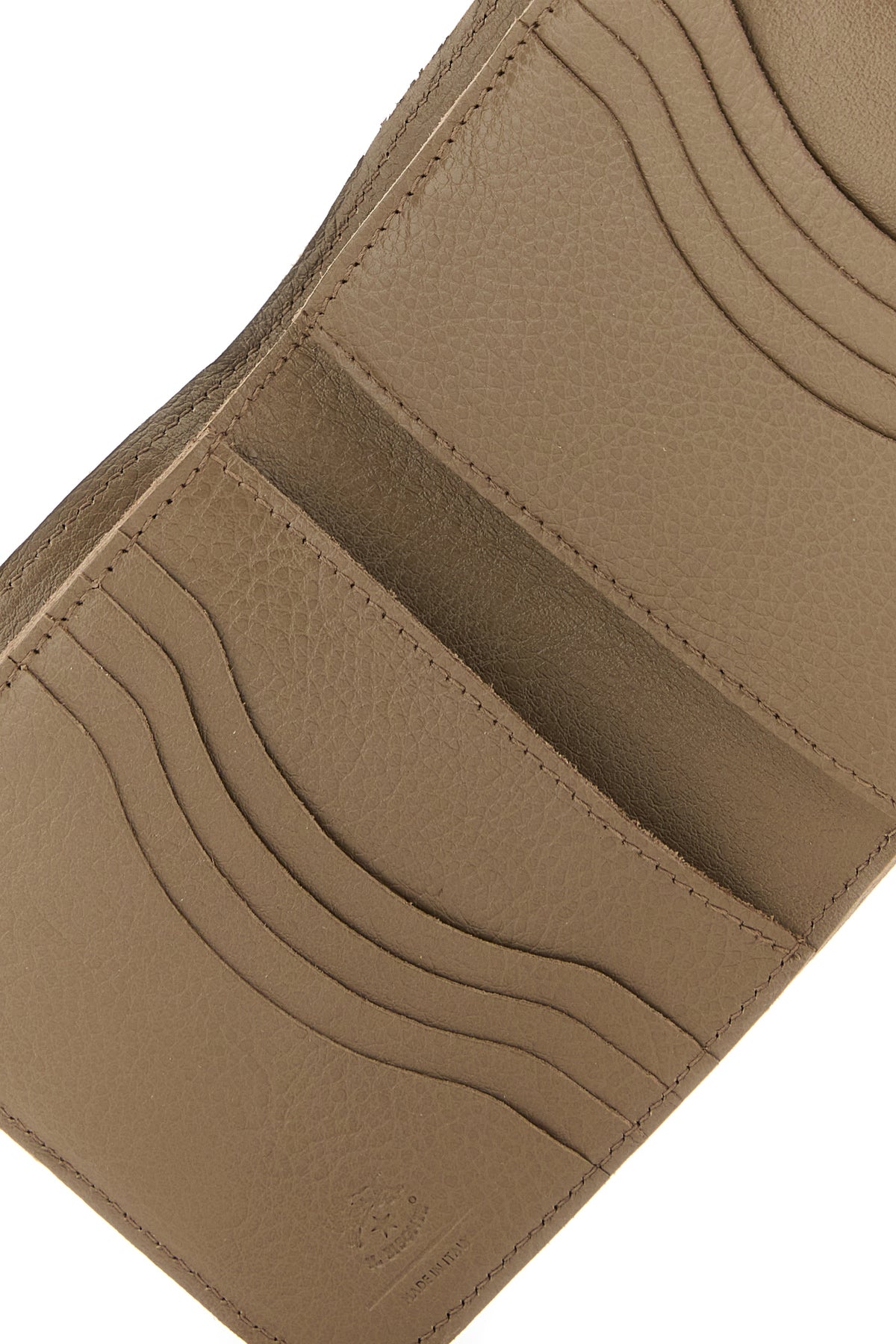 Wallet realized in pebble leather characterized by embossed logo at the front.