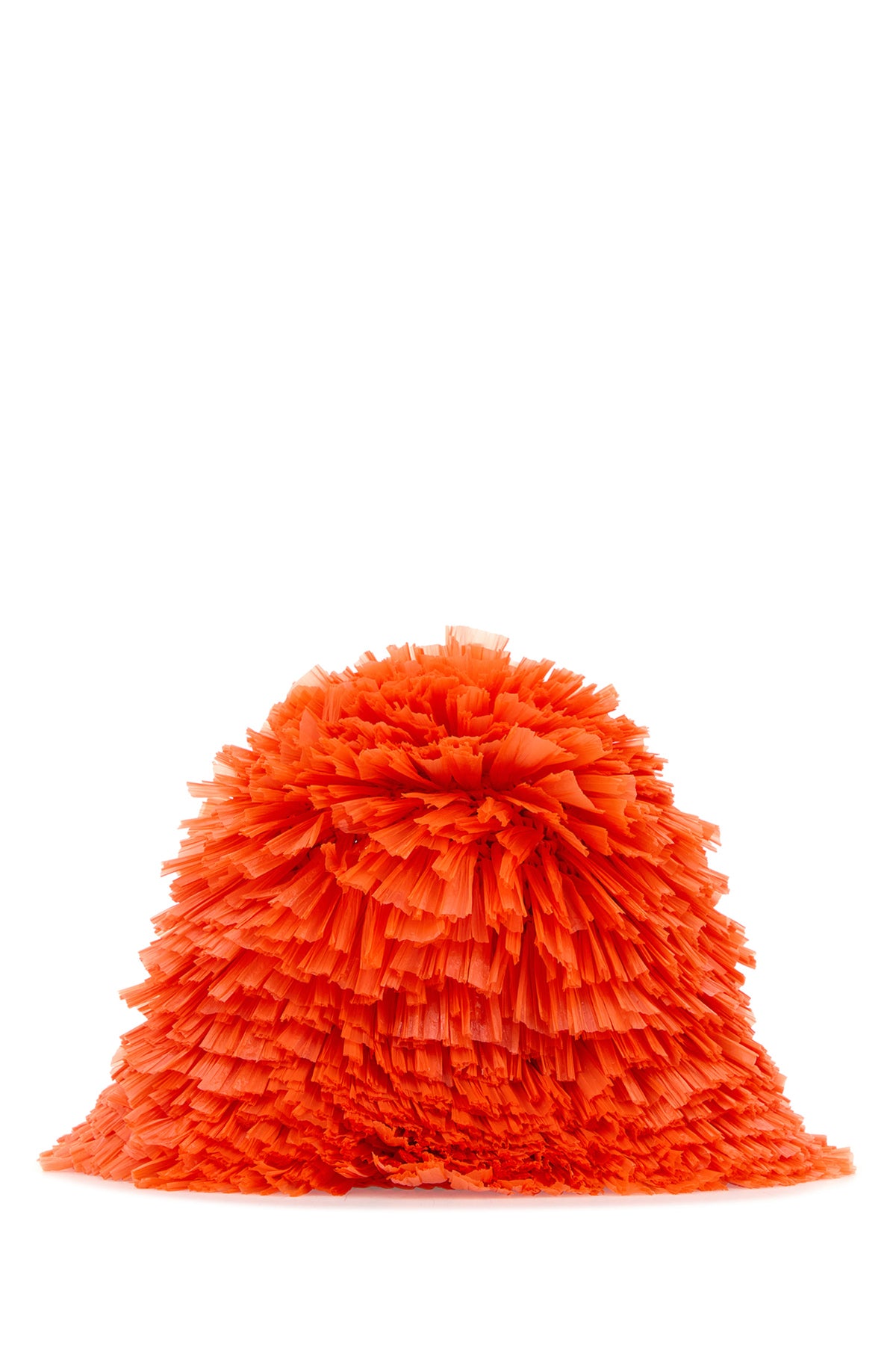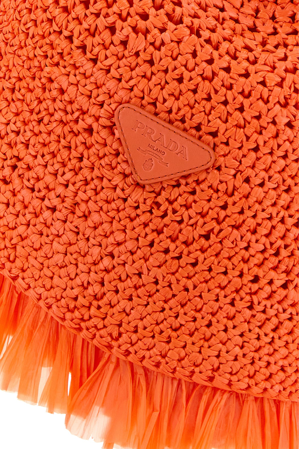 Bucket hat realized in raffia entirely covered by fringes enriched by iconic logoed metal triangle.