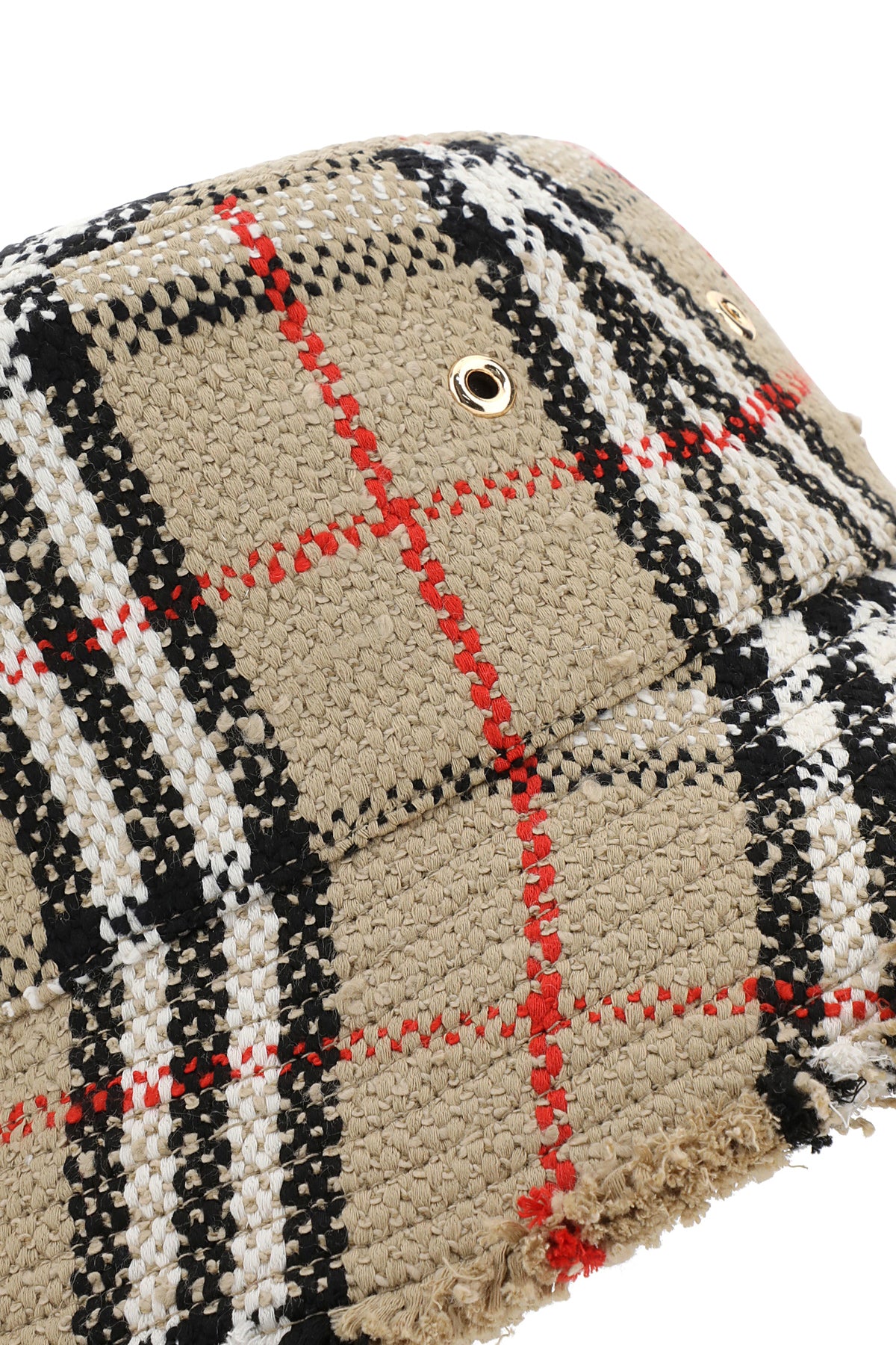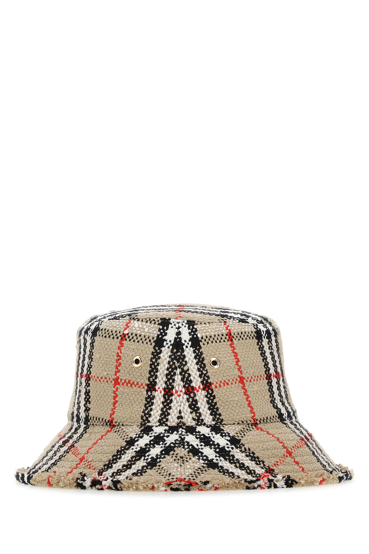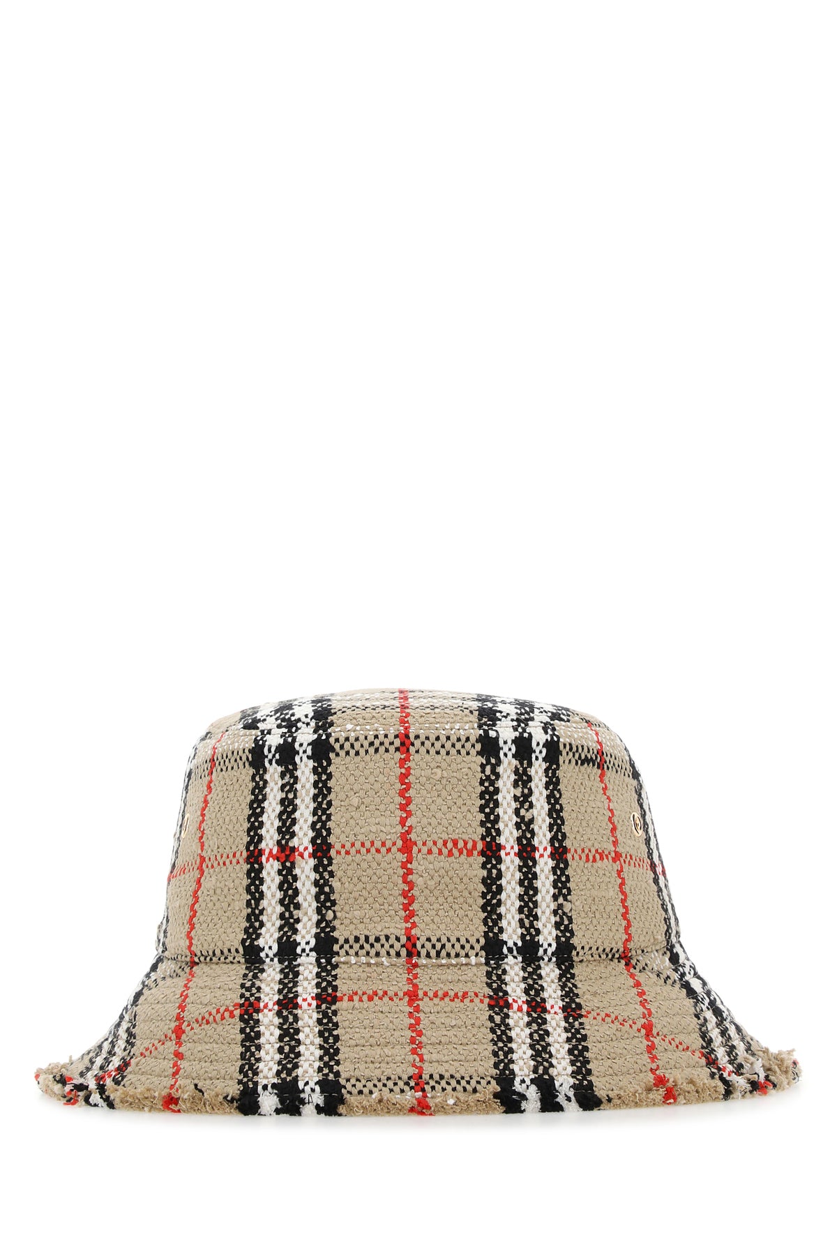 Bucket hat realized in bouclé characterized by Vintage Check embroidery on the entire surface.
