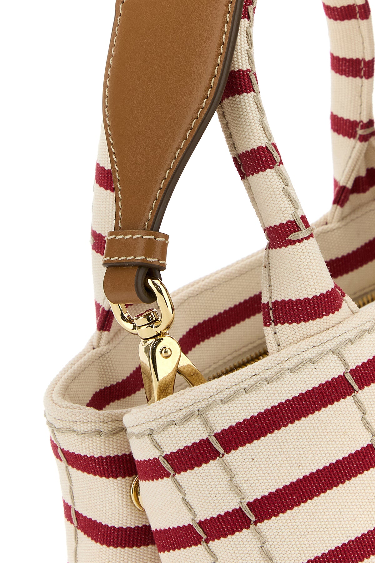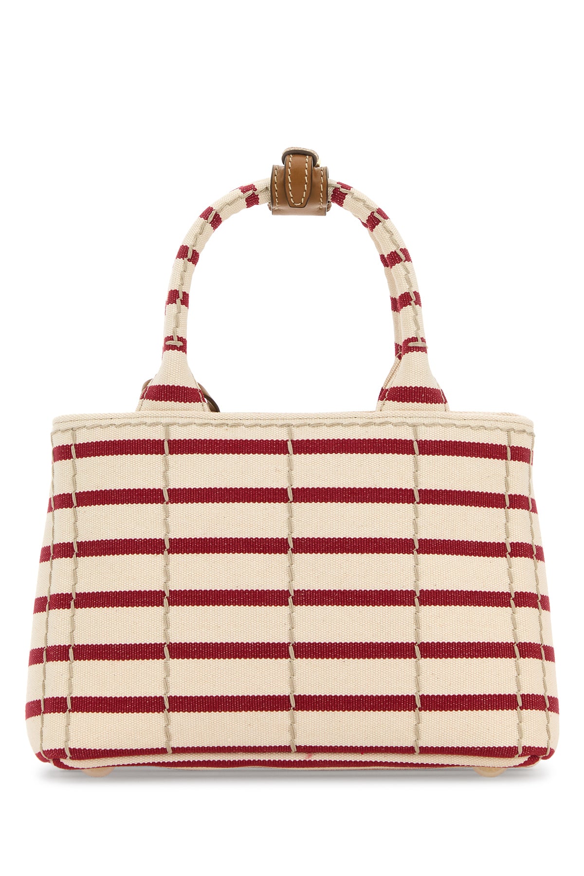 Handbag realized in canvas characterized by striped embroidery on the entire surface and embroidered logo at the front.