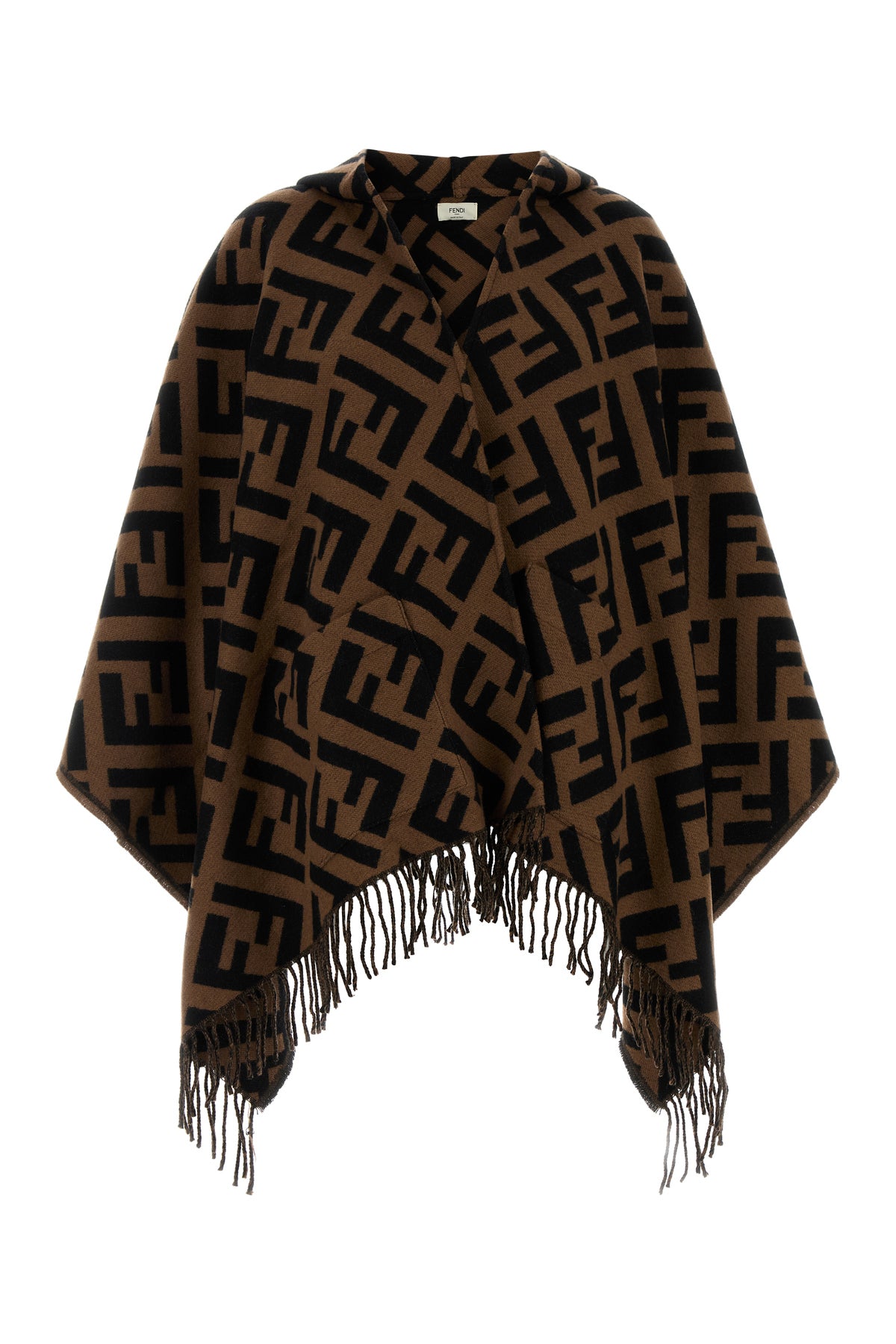 Cape realized in pure cashmere characterized by FF motif embroidery on the entire surface.
