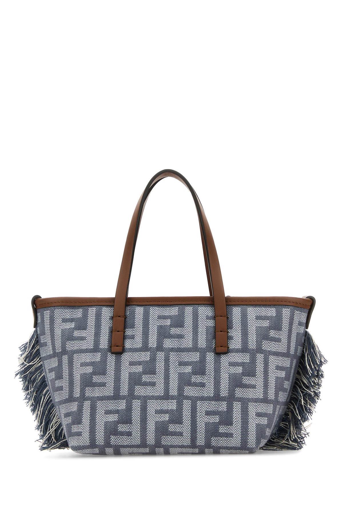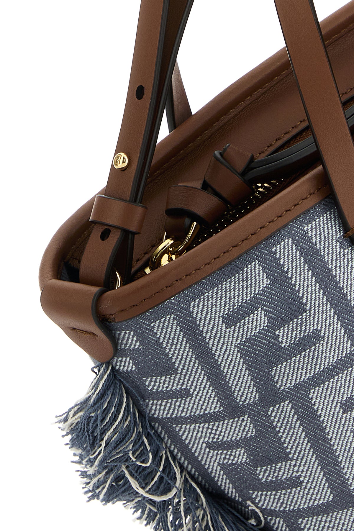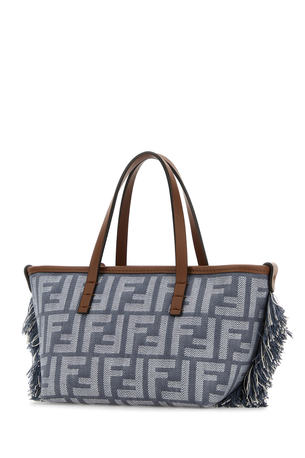 Handbag realized in denim characterized by embroidered FF motif on the entire surface enriched by fringes on the sides.