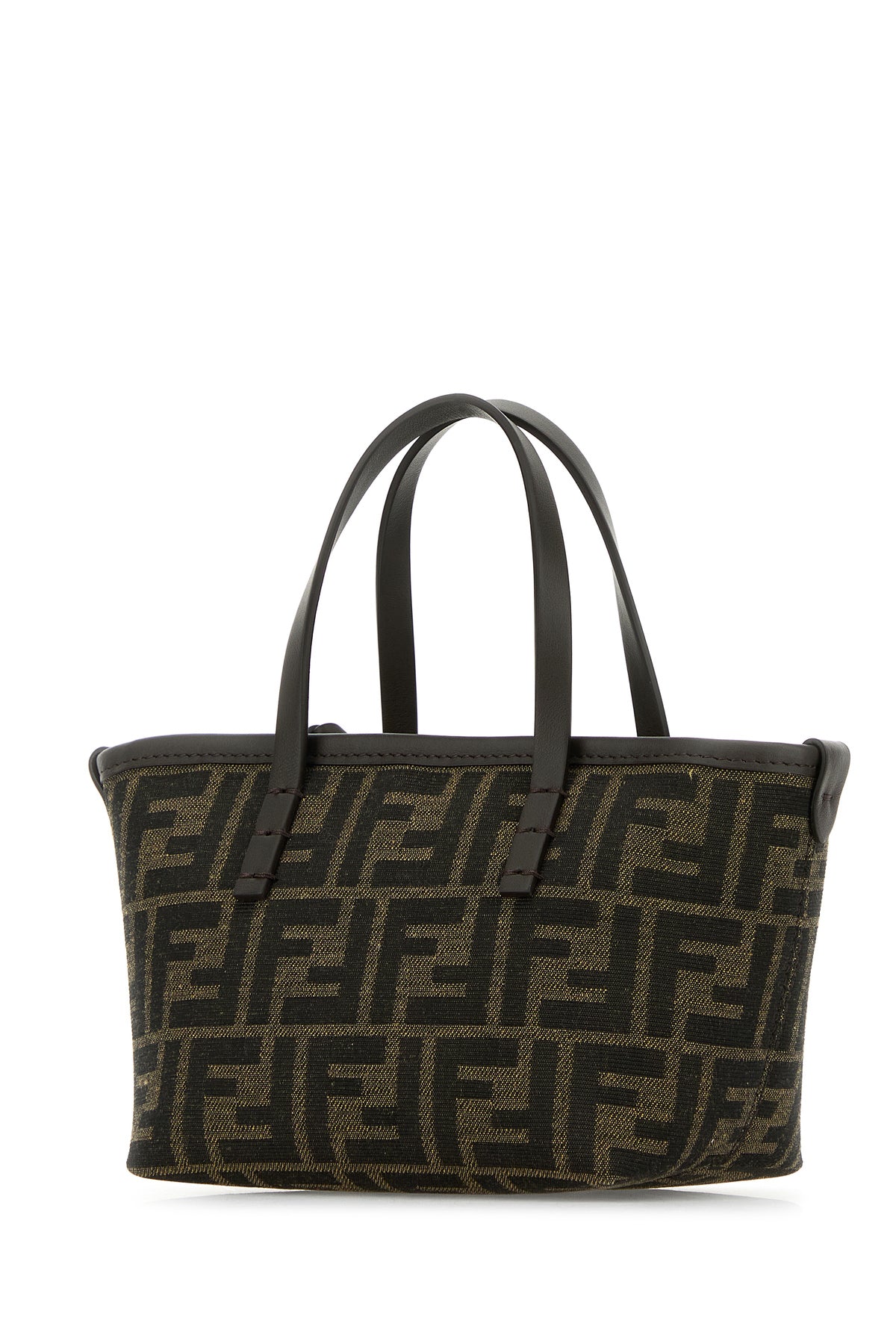 Handbag realized in fabric characterized by embroidered FF motif on the entire surface.