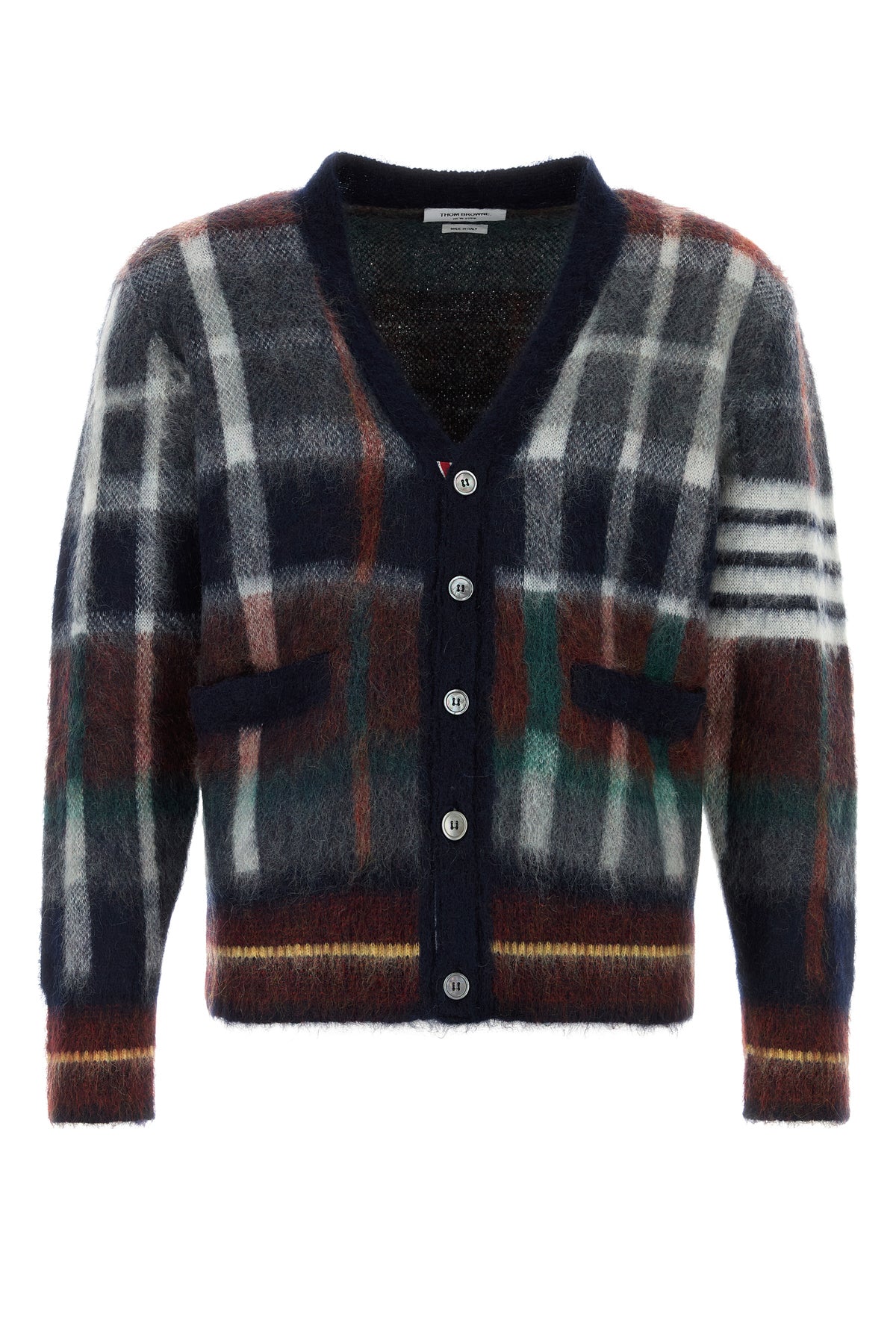 Cardigan realized in mohair blend characterized by Gingham Hector embroidery on the entire surface.
