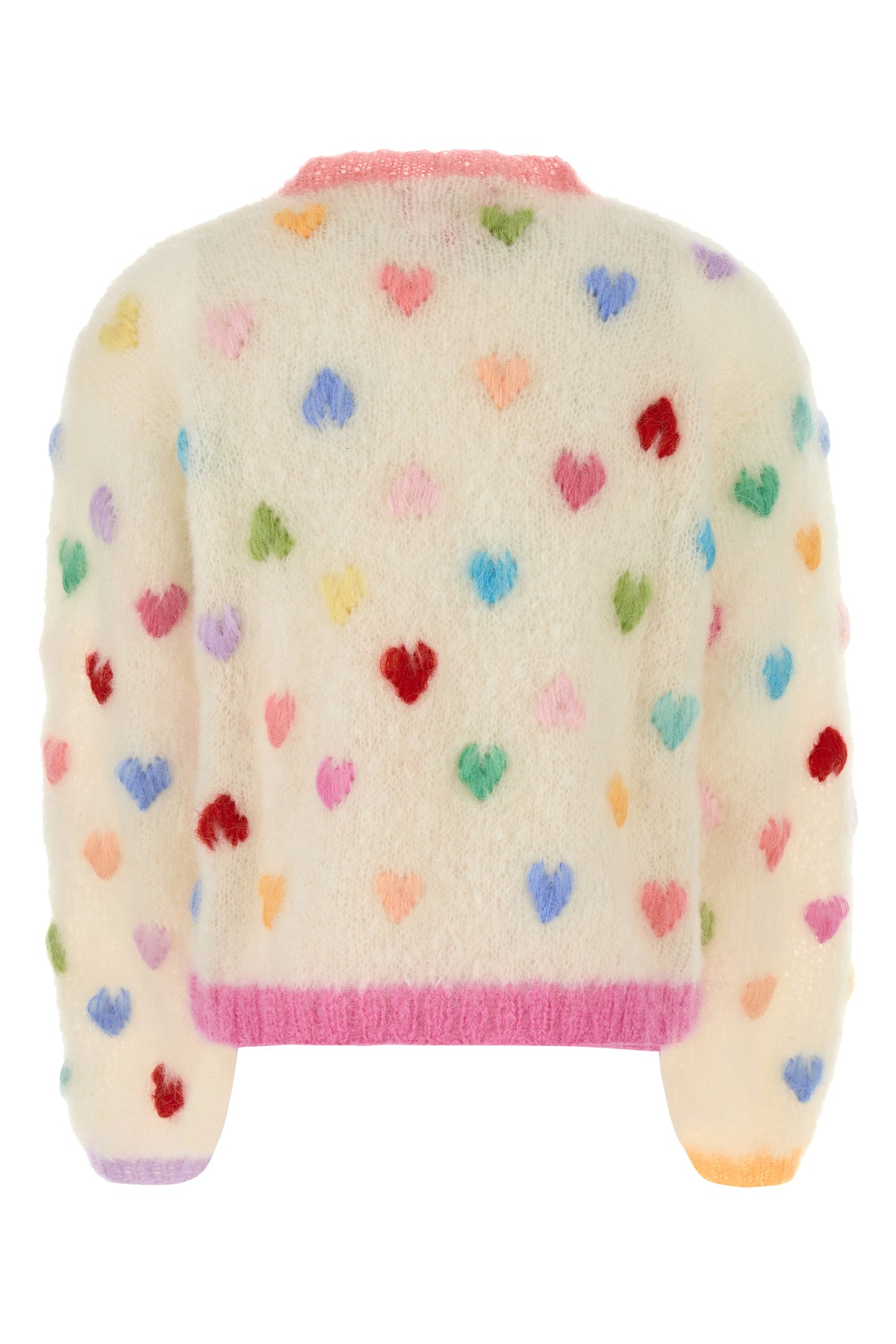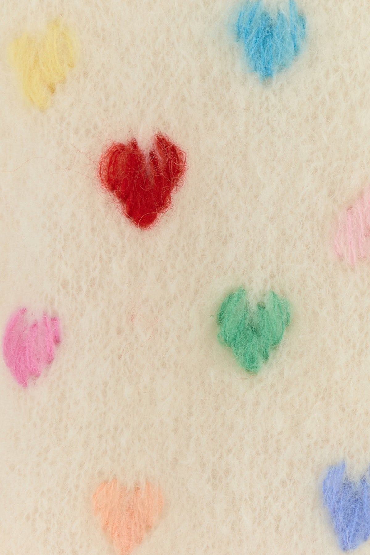 Sweater realized in mohair blend characterized by heart-shaped embroidery on the entire surface.