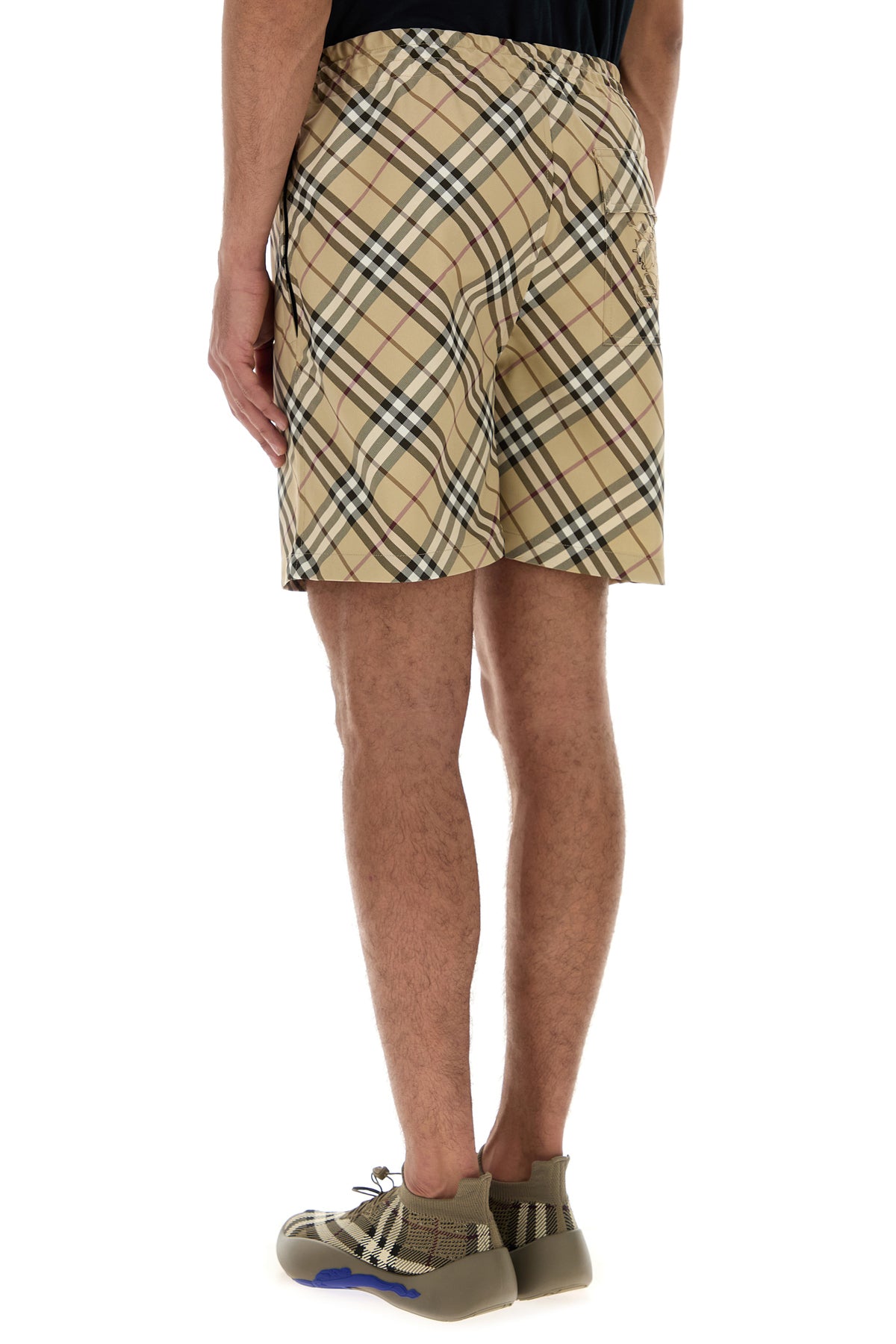 Bermuda shorts realized in polyester characterized by Burberry Check embroidery on the entire surface.