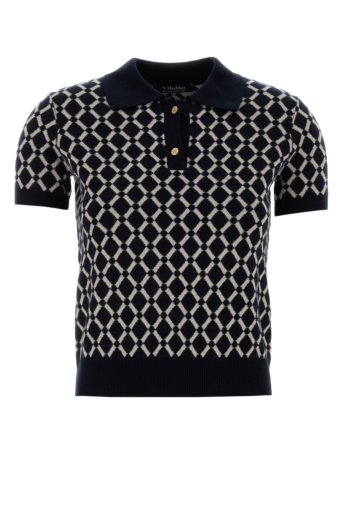 Polo shirt realized in pure wool characterized by checked embroidery on the entire surface.