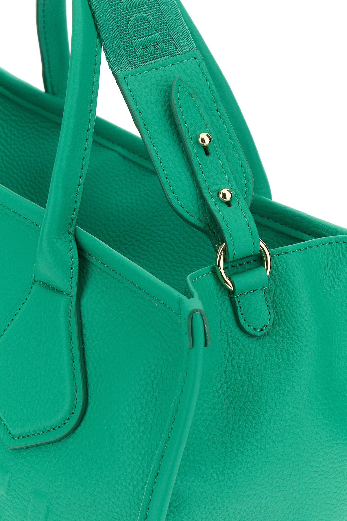 Shopping bag realized in pebble bovine leather characterized by tonal logo in relief at the front.