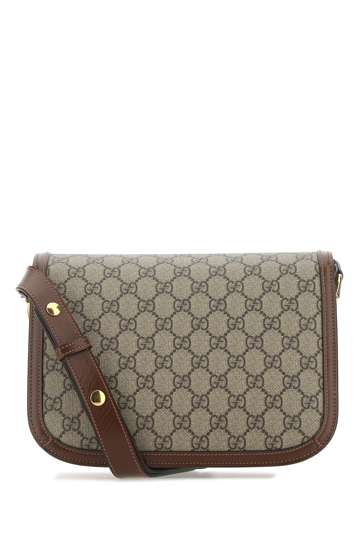 Shoulder bag realized in coated GG Supreme fabric and grained leather enriched by metal Horsebit at the front.