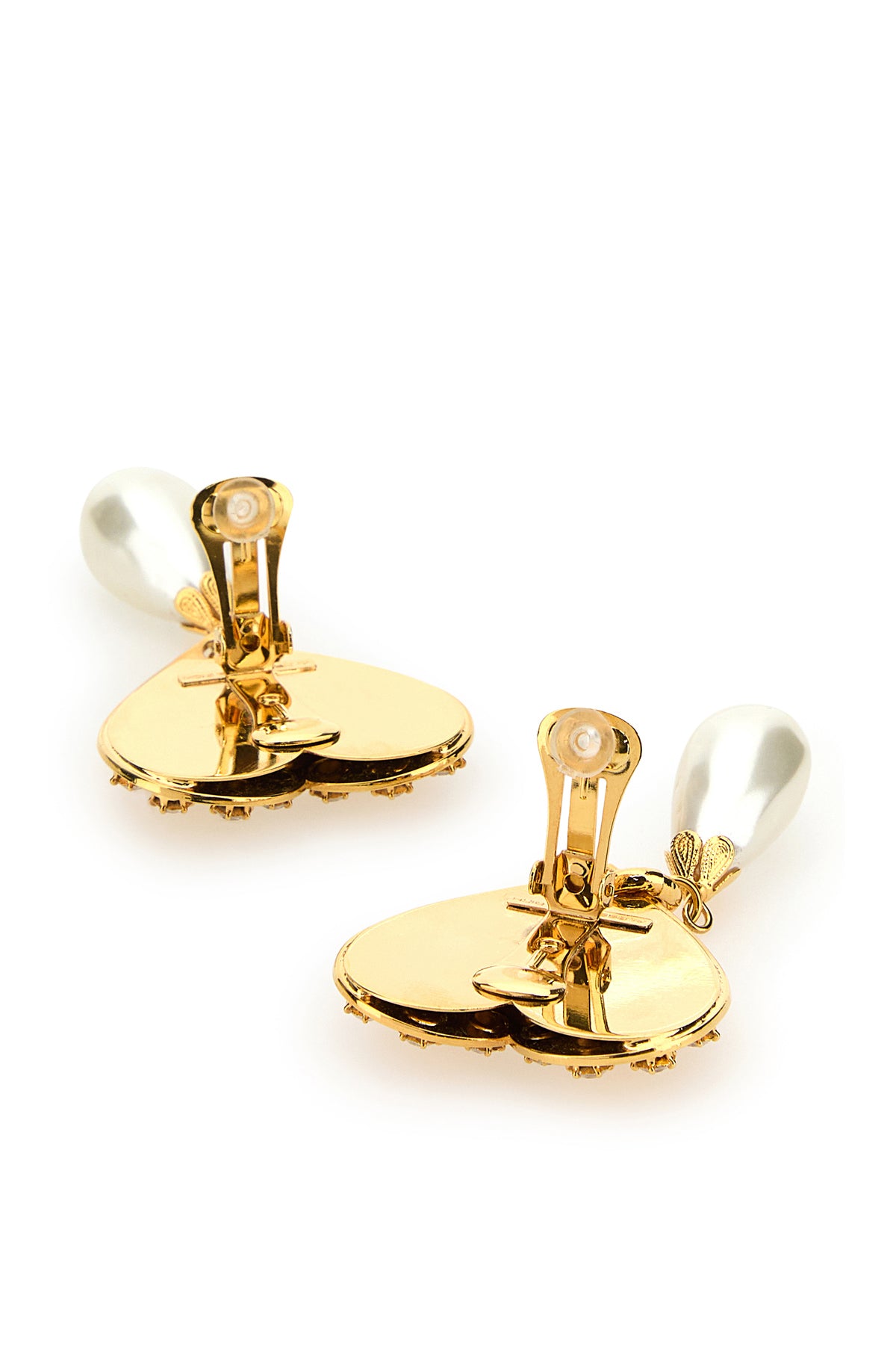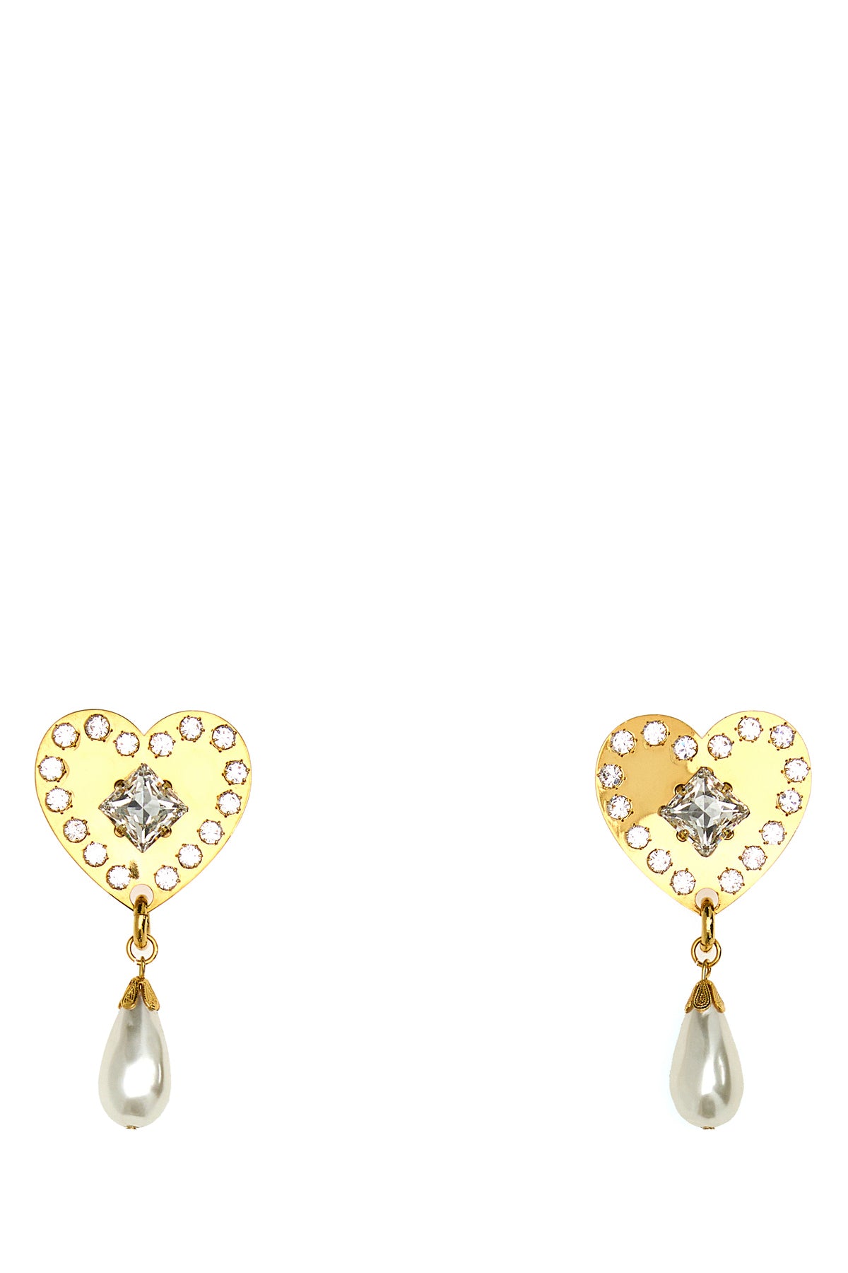 Earrings realized in gold-tone plated metal enriched by rhinestones.