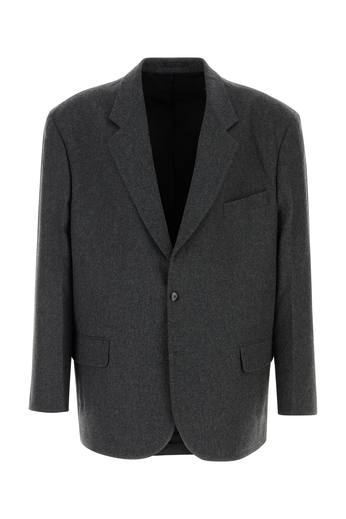 Blazer realized in wool blend characterized by drawstring at the waist.