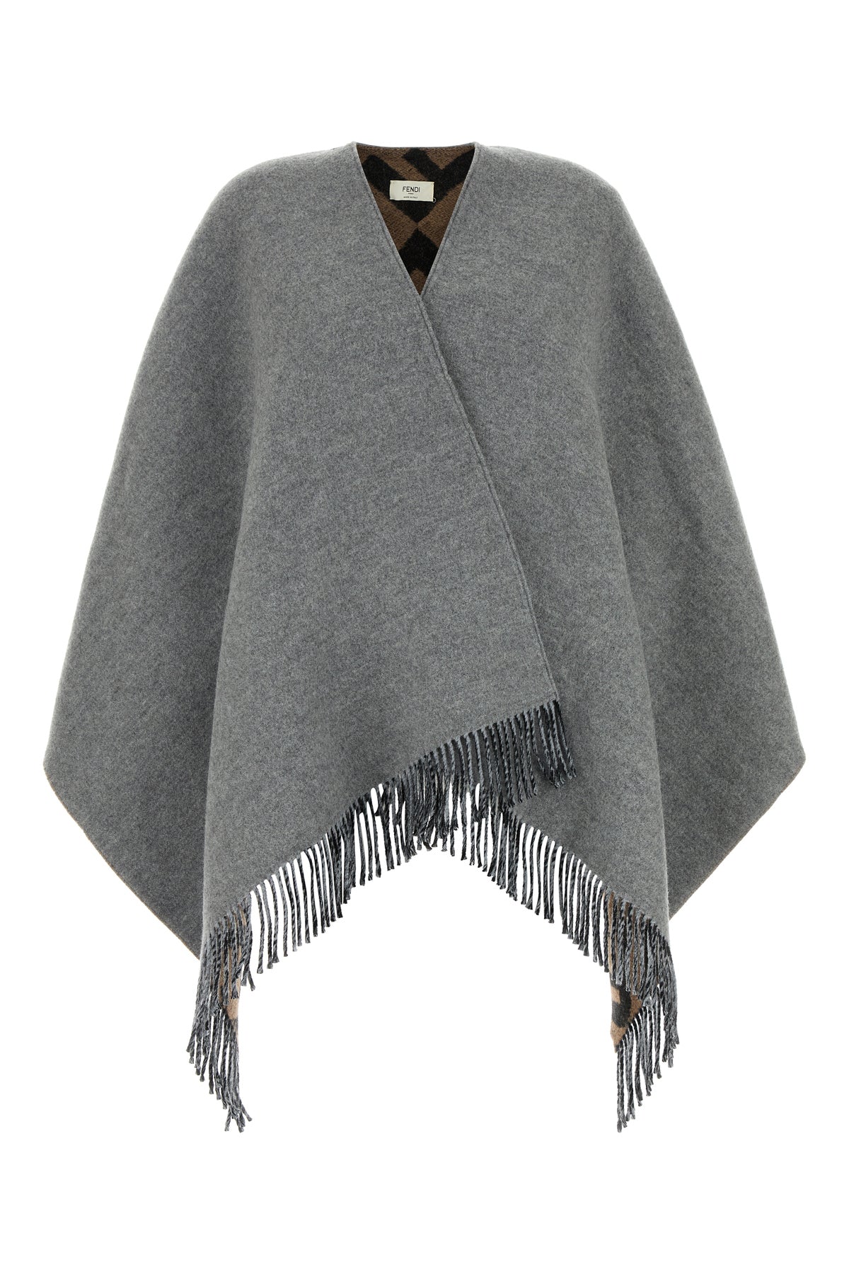 Cape realized in wool and cashmere characterized by FF motif printed interior.