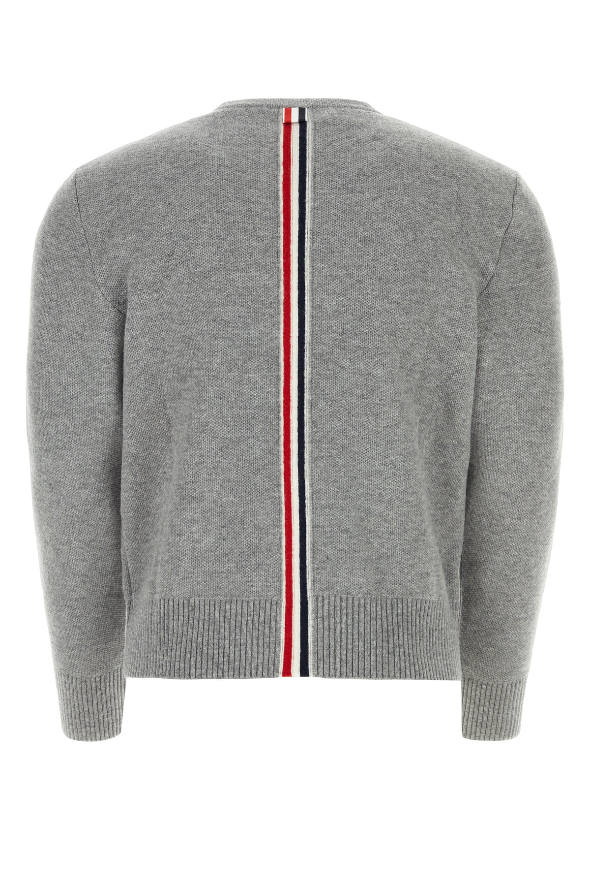 Sweater realized in pure virgin wool characterized by tricolor embroidery at the back enriched by iconic tricolor label at the back,