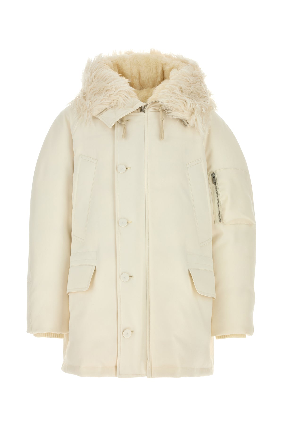 Ivory gabardine oversize down jacket