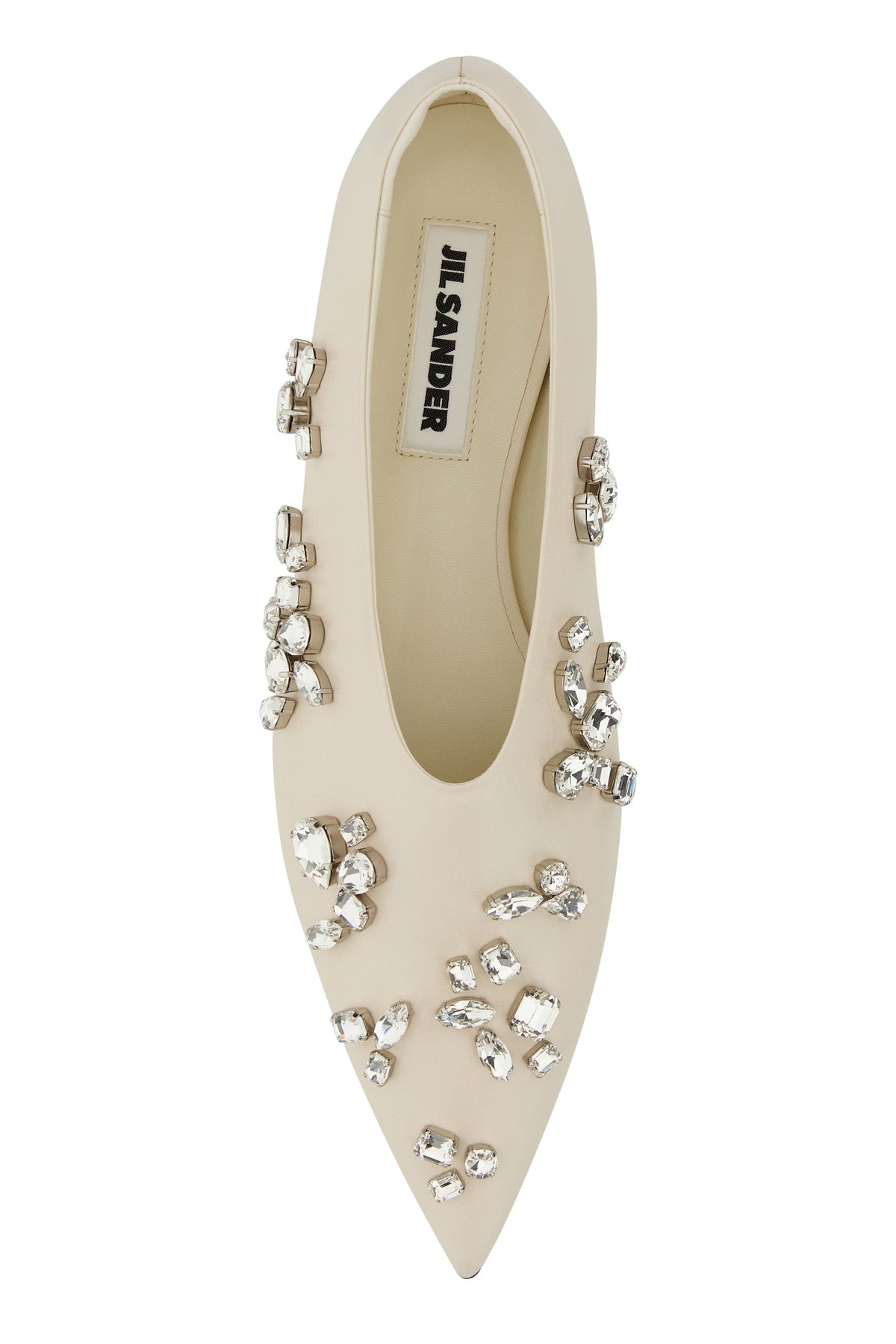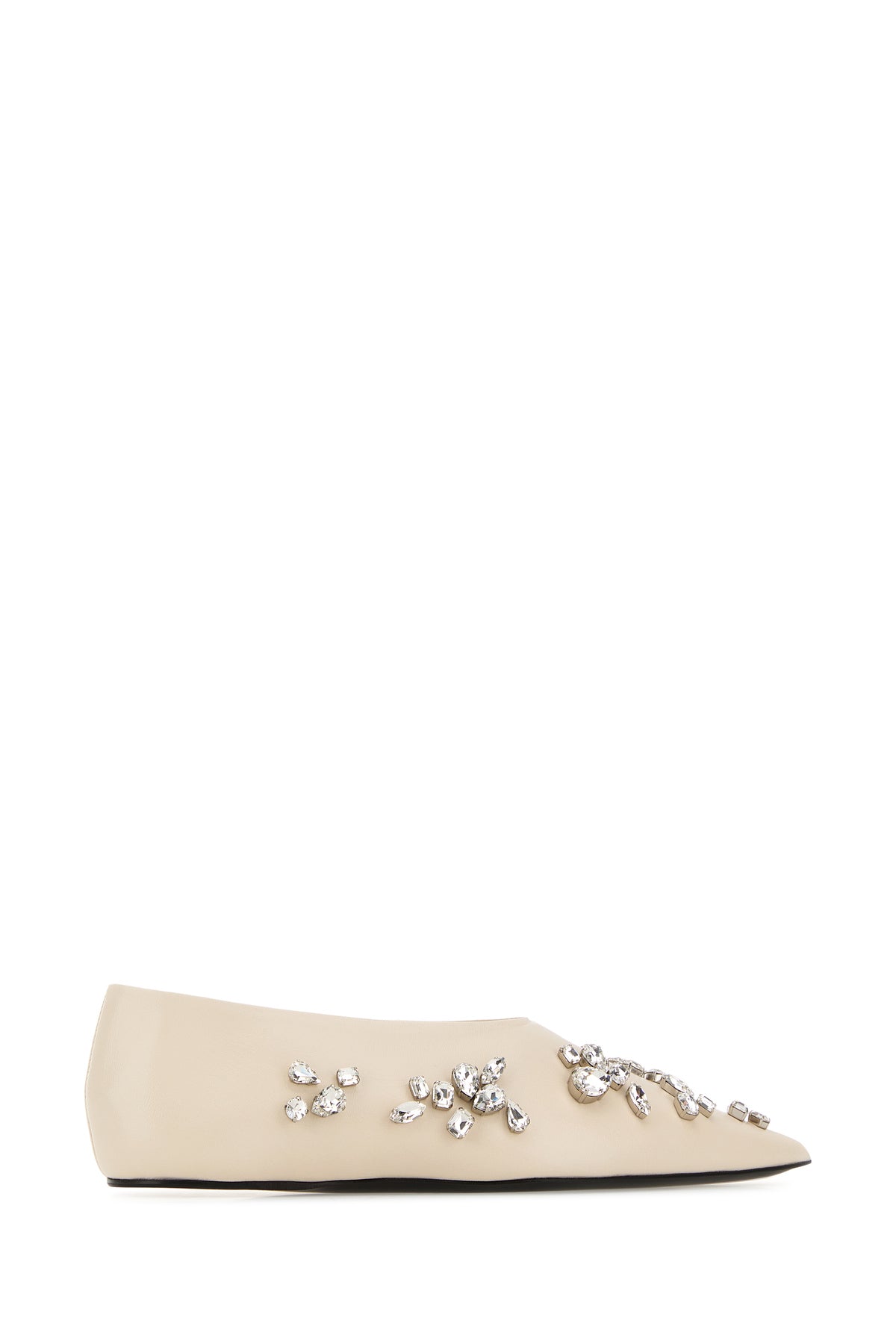 Ballerinas realized in pebble ovine leather enriched by rhinestones on the entire surface.