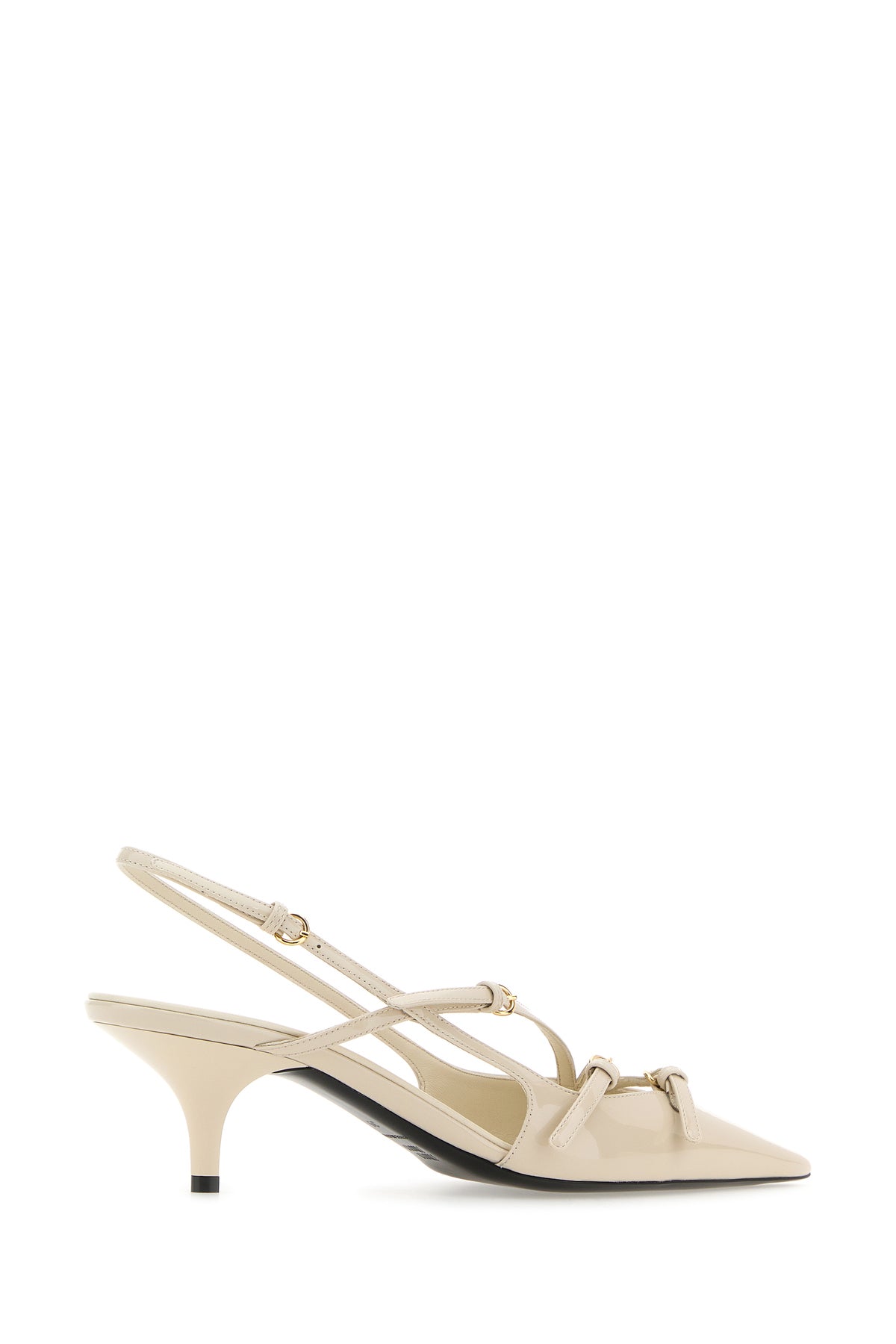 Slingback realized in patent leather characterized by adjustable straps on the instep.