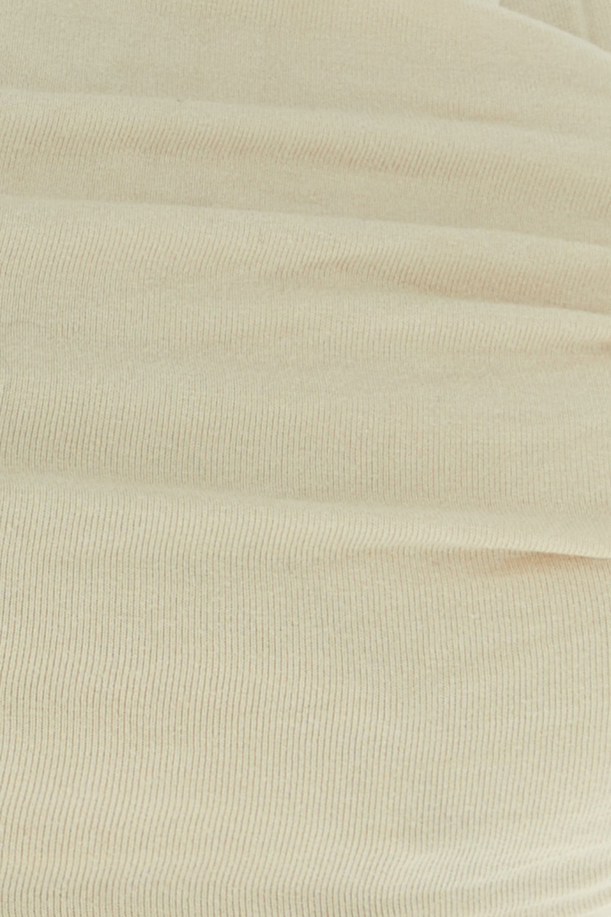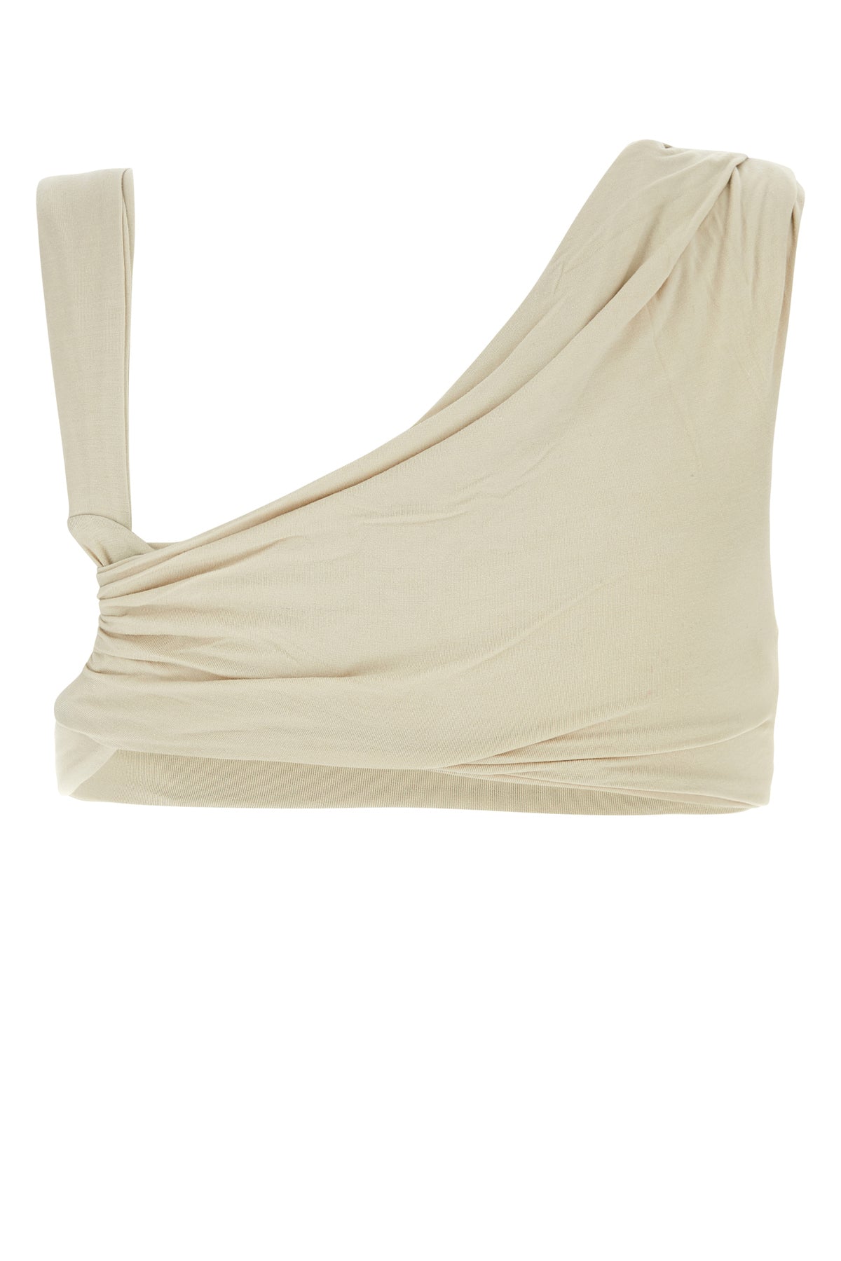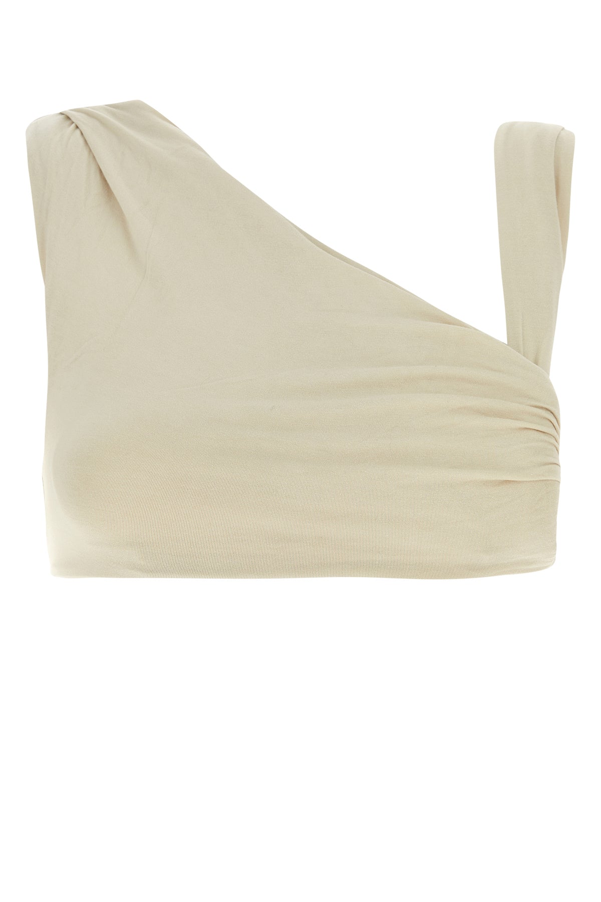 Top realized in stretch nylon characterized by gatherings at the front and at the back.
