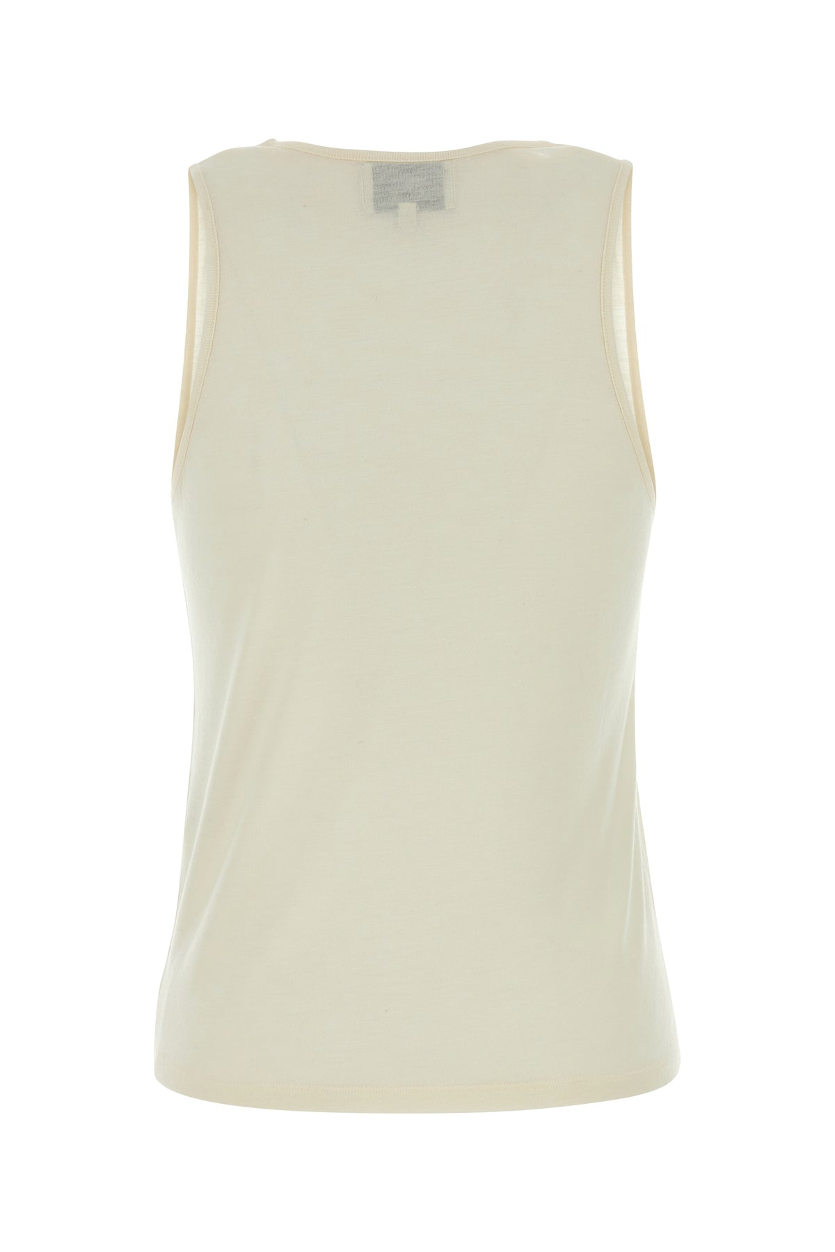 Tank top realized in viscose blend characterized by embroidered logo on the hemline.