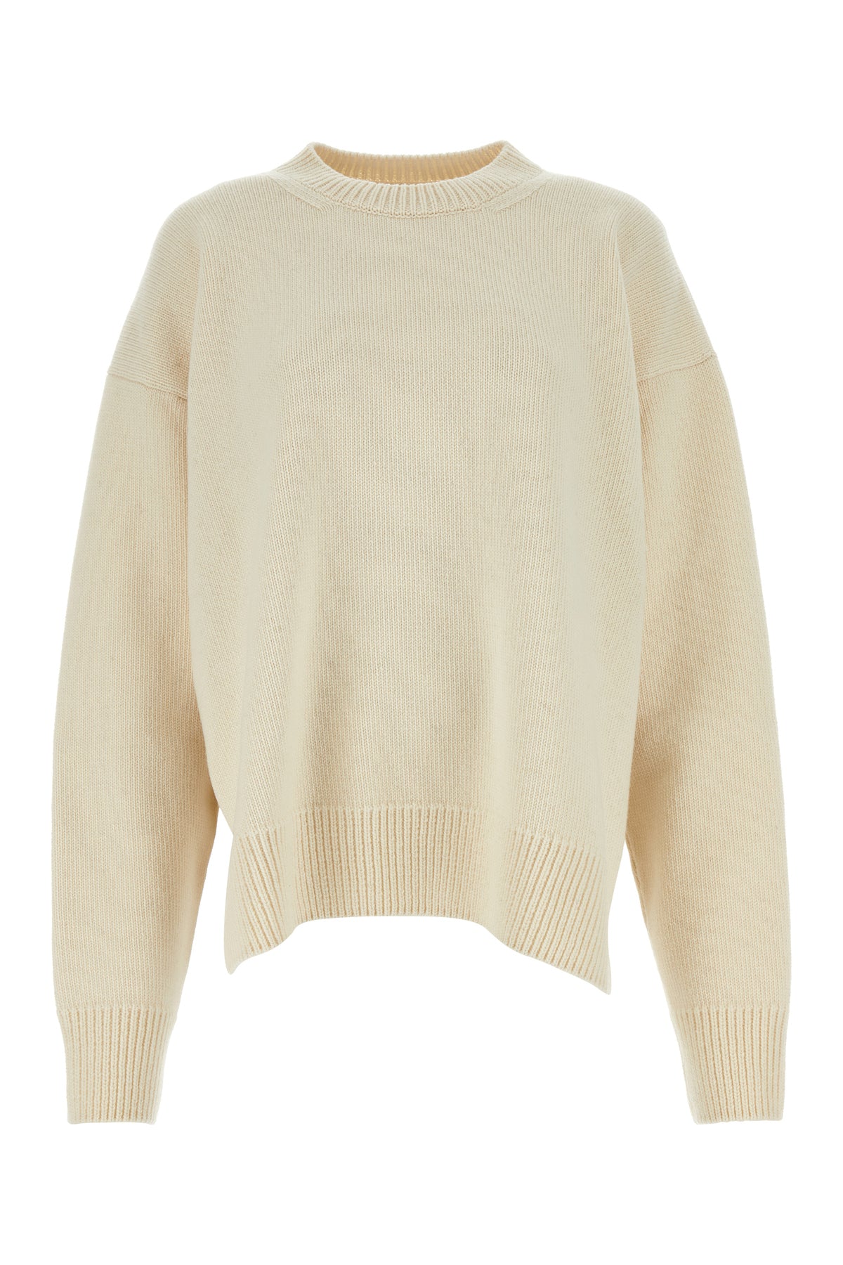 Sweater realized in wool and cashmere characterized by deep lateral slits.