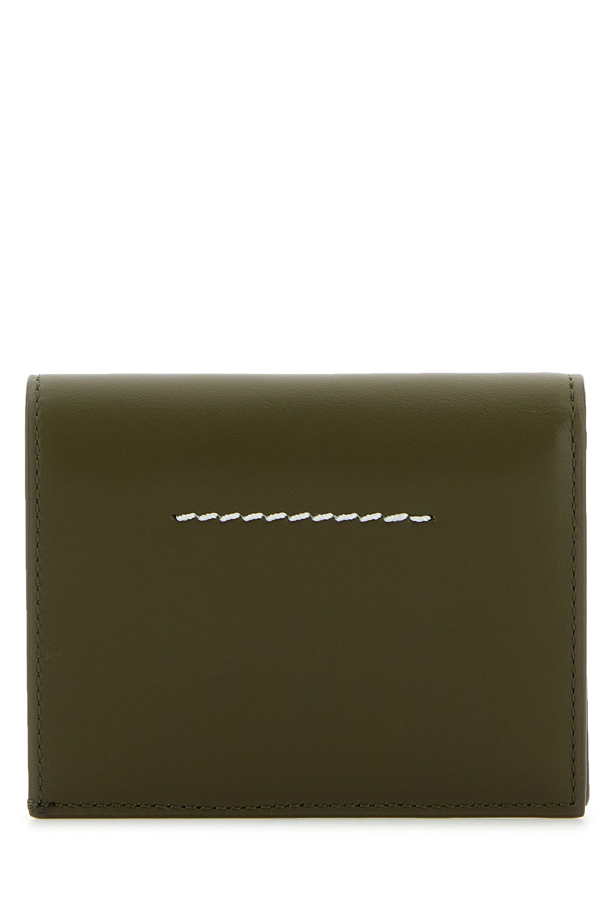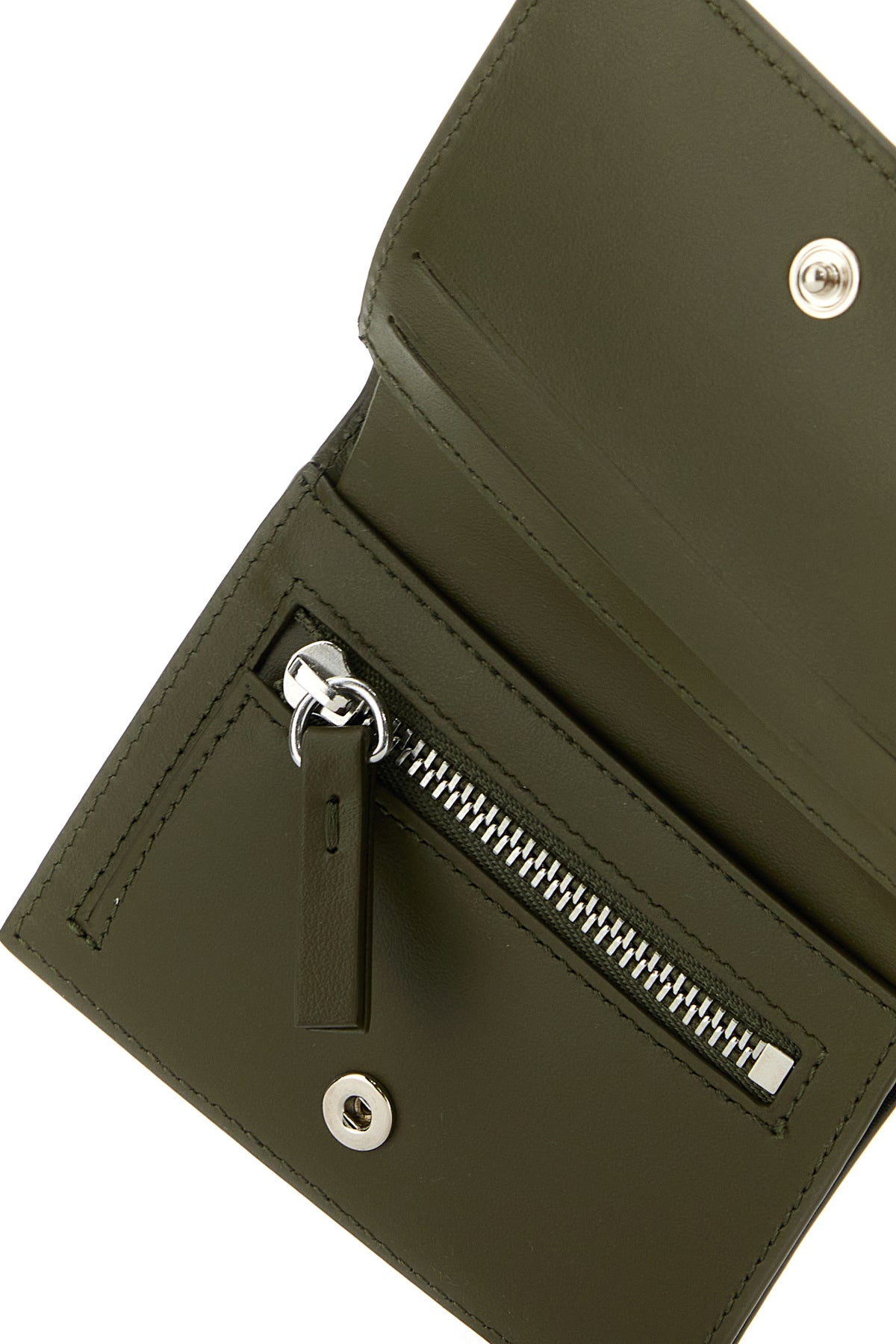 Wallet realized in polished-finish smooth leather characterized by contrasting iconic stitching at the back enriched by metal logoed late at the front.