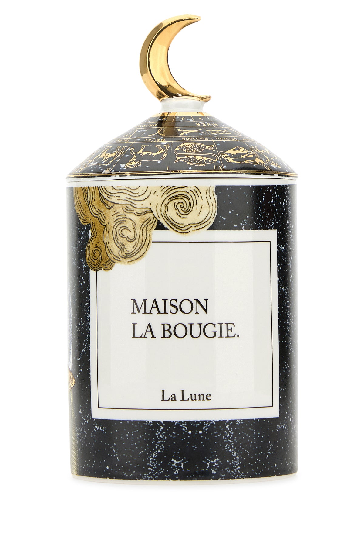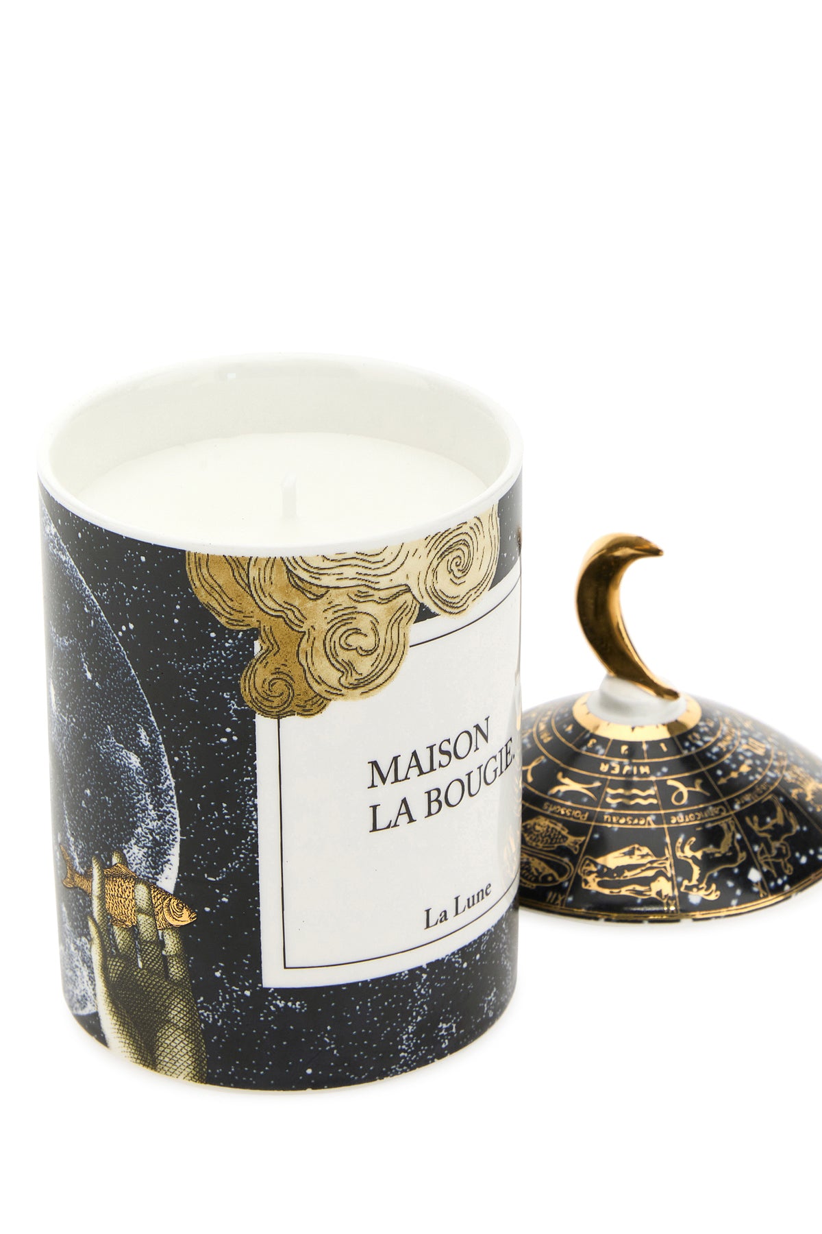 Candle realized in portuguese ceramic characterized by La Lune embellishment on the entire surface.