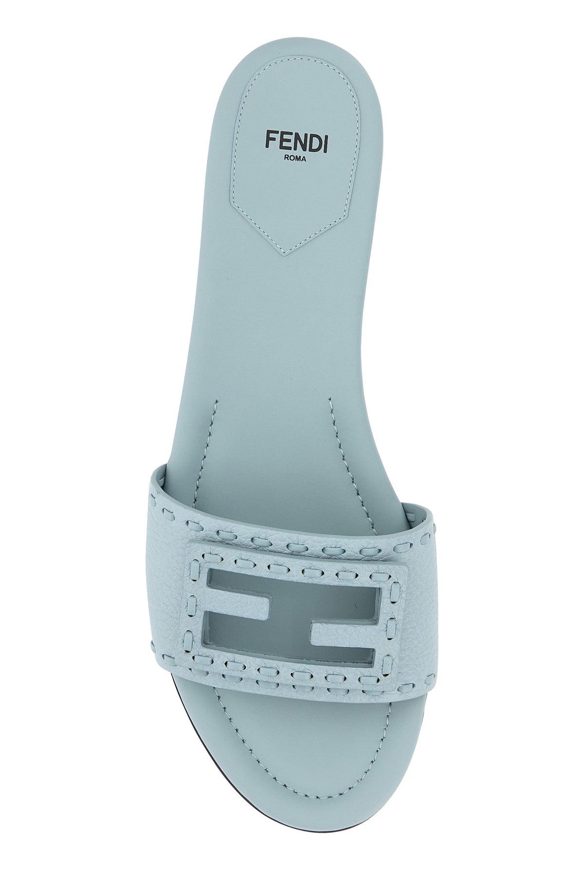 Slippers realized in pebble calf leather enriched by cut-out FF Baguette detail at the front.
