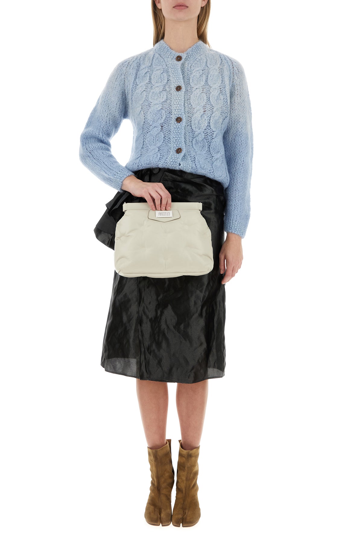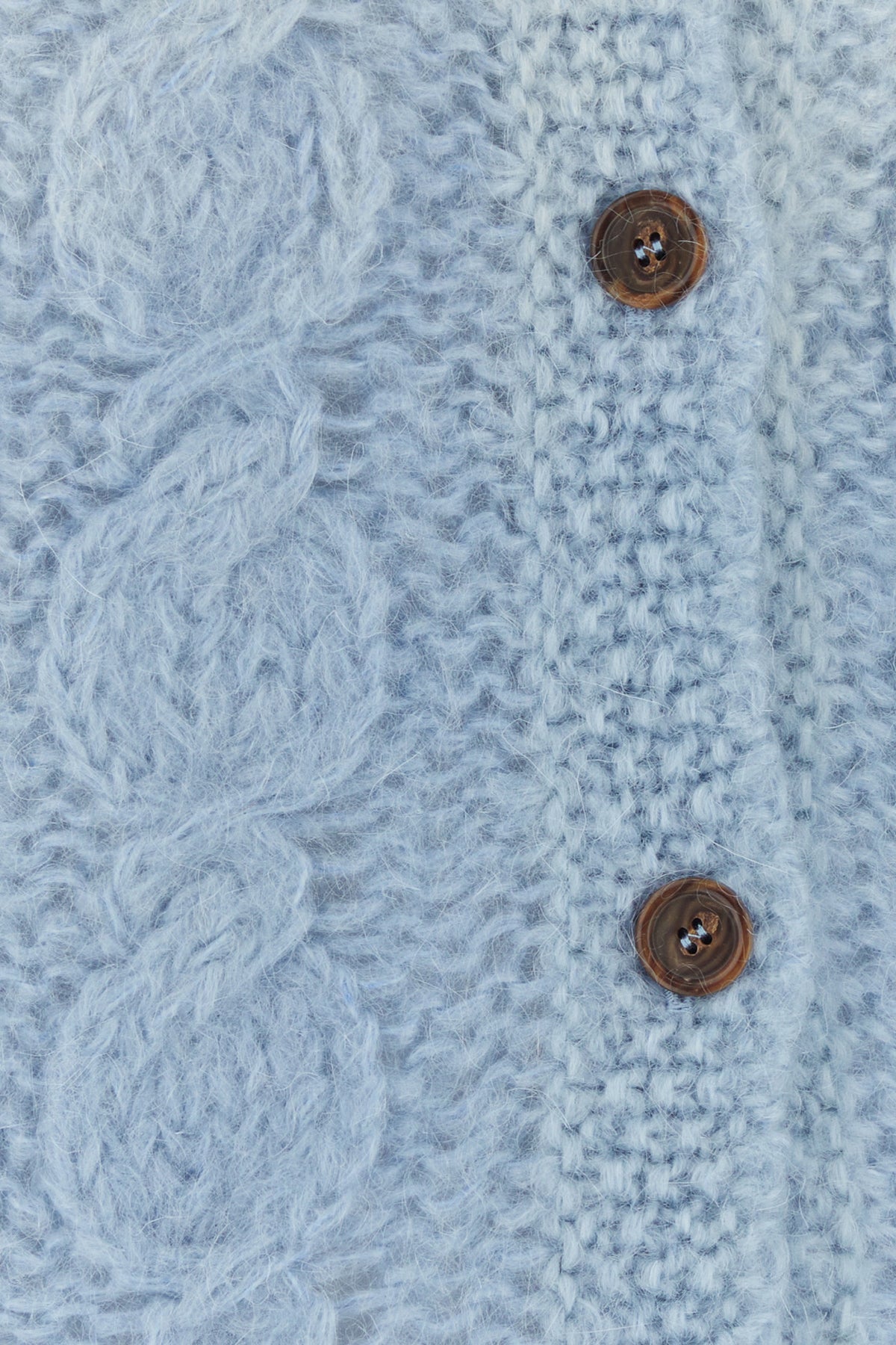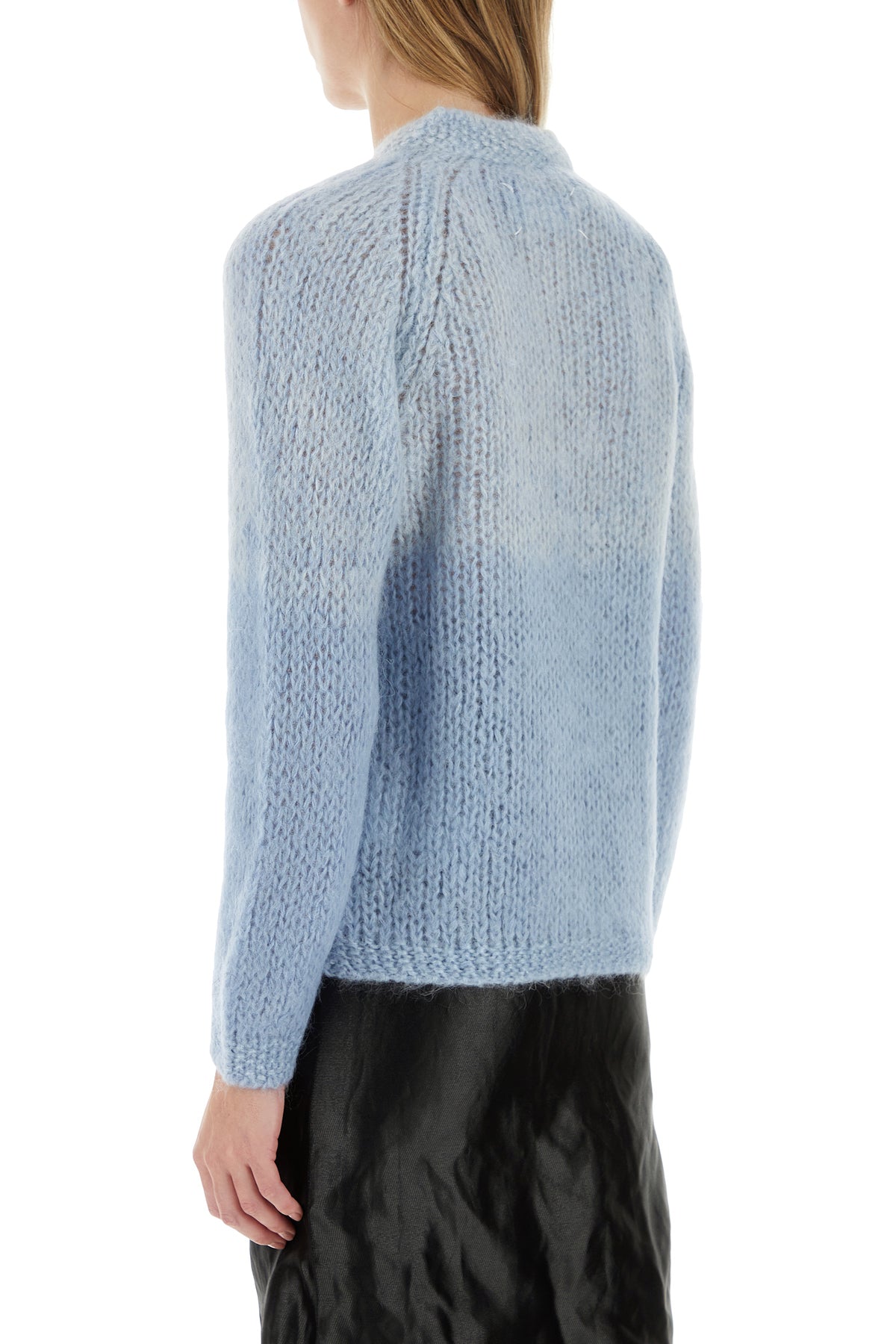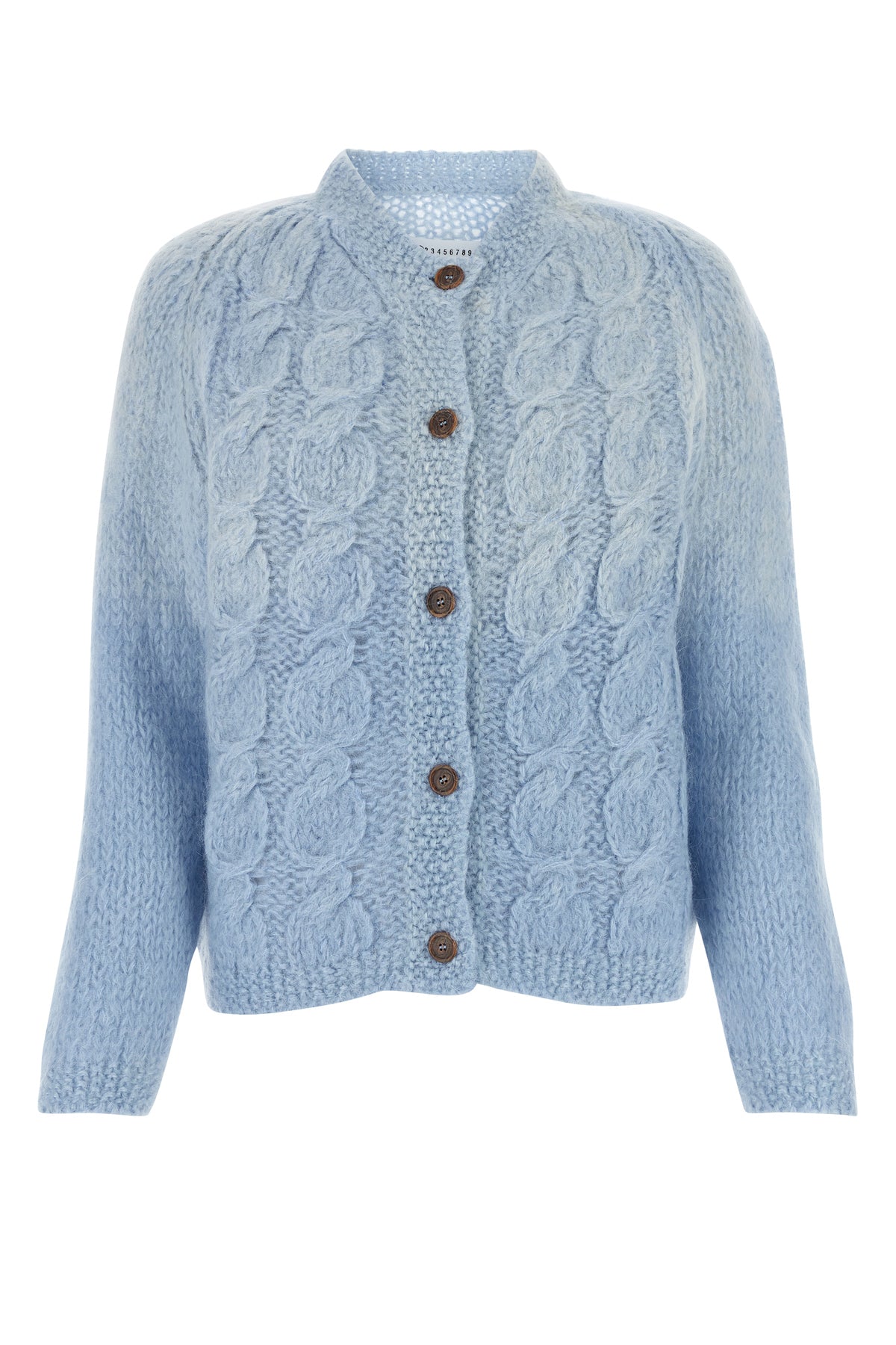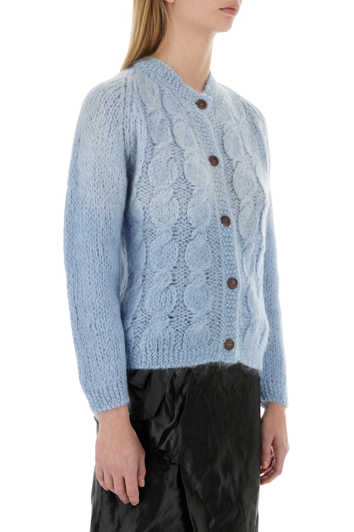 Cardigan realized in mohair blend characterized by iconic contrasting stitchings at the back.