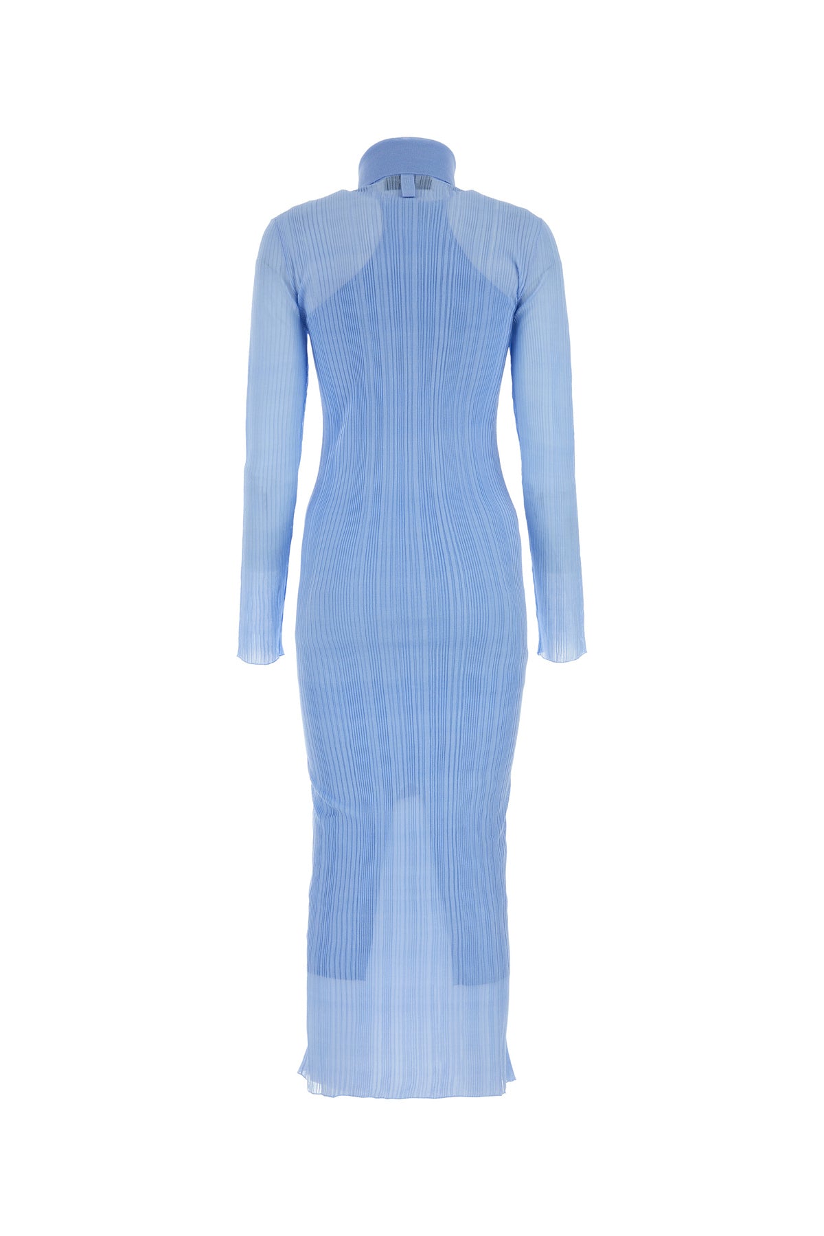 Long-cut see through dress realized in ribbed viscose blend enriched by pull-tab at the back.