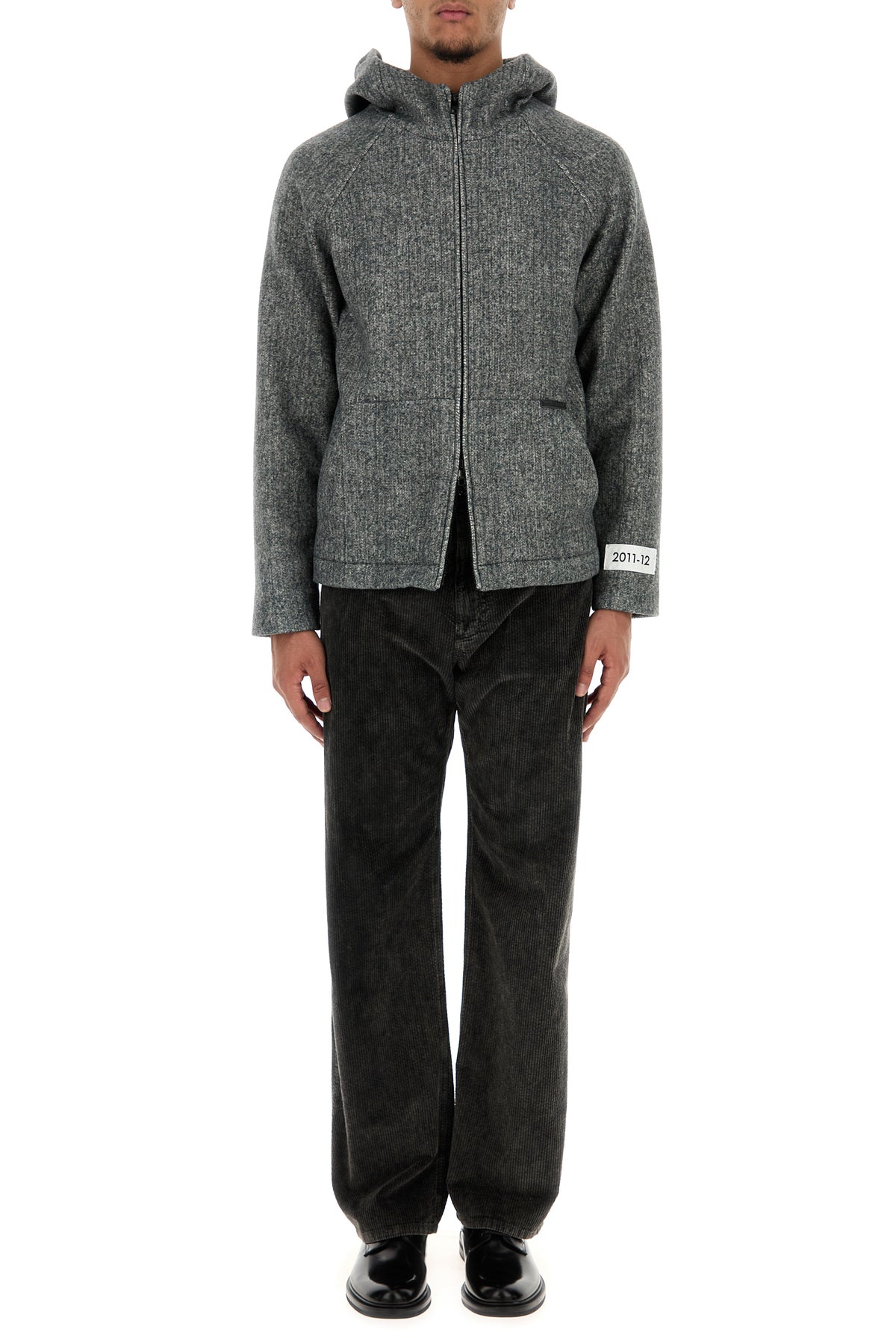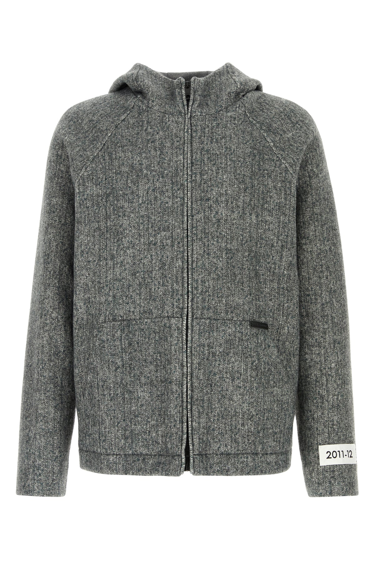 Jacket realized in acrylic blend enriched by contrasting logoed label at the front and contrasting label on the sleeve.