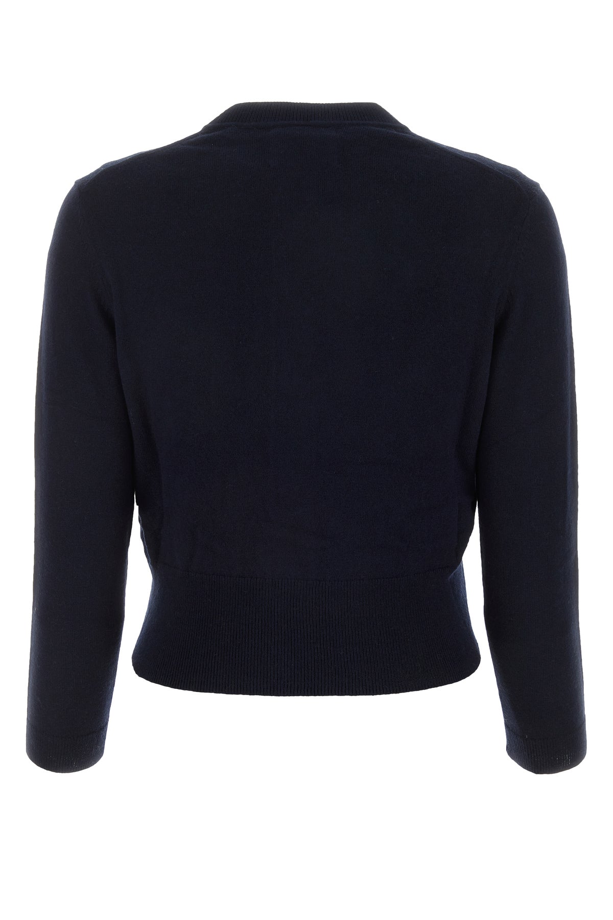 Cardigan realized in cotton and wool characterized by contrasting logoed embroidery on the chest.