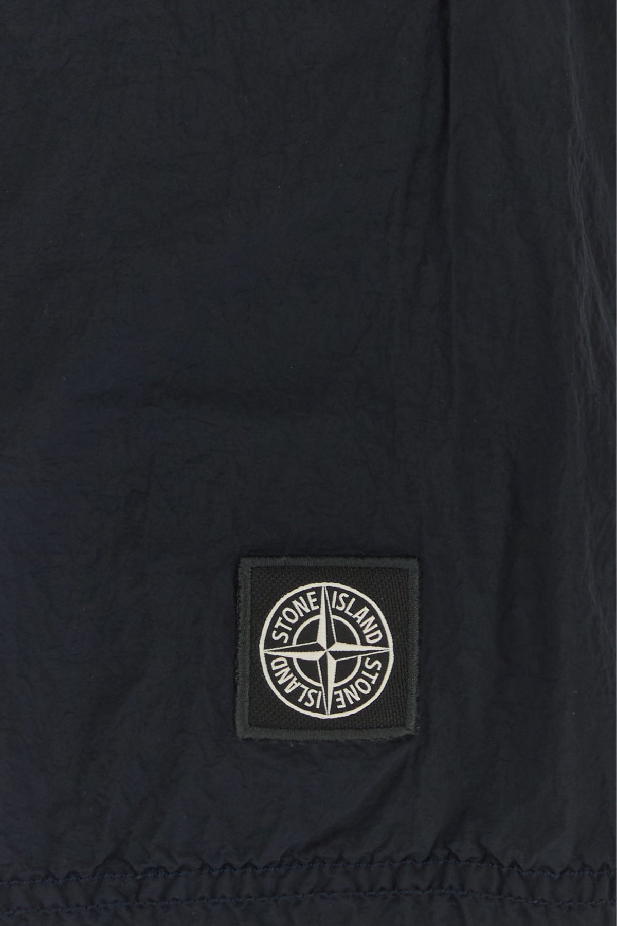 Swimming shorts realized in creased-effect nylon enriched by logoed label at the front.
