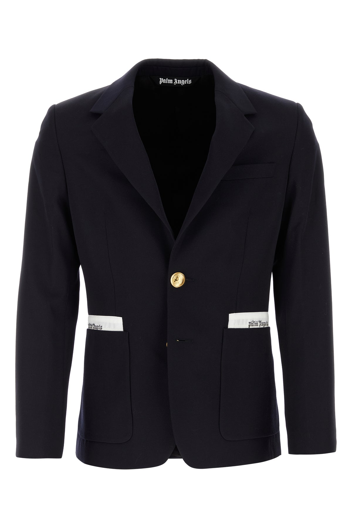 Blazer realized in twill enriched by contrasting logoed inserts at the front.