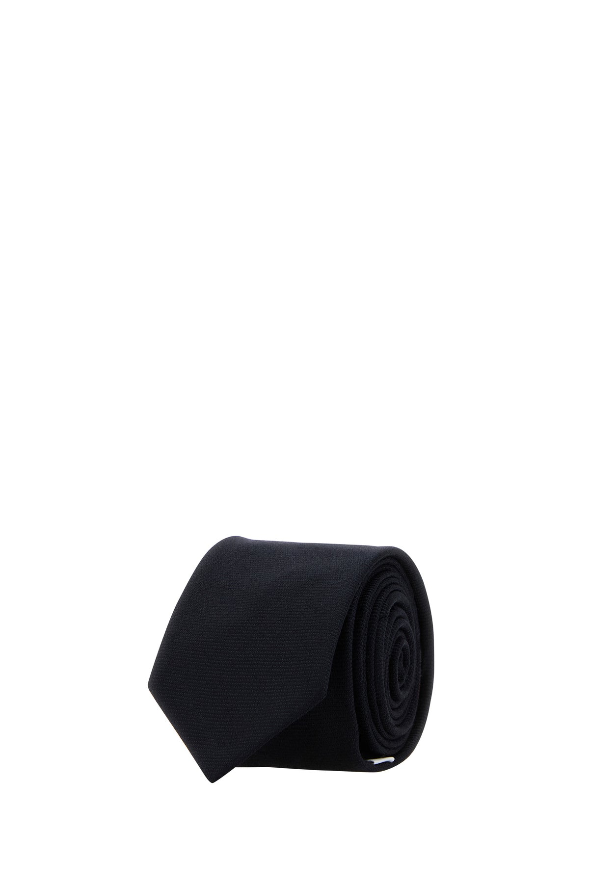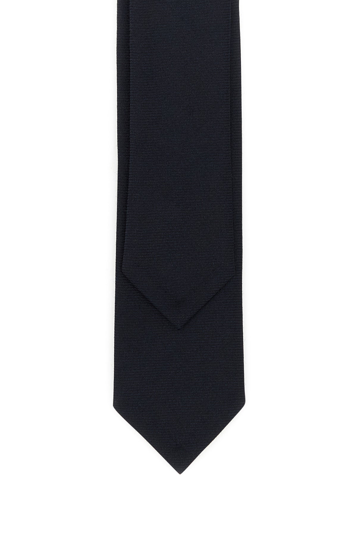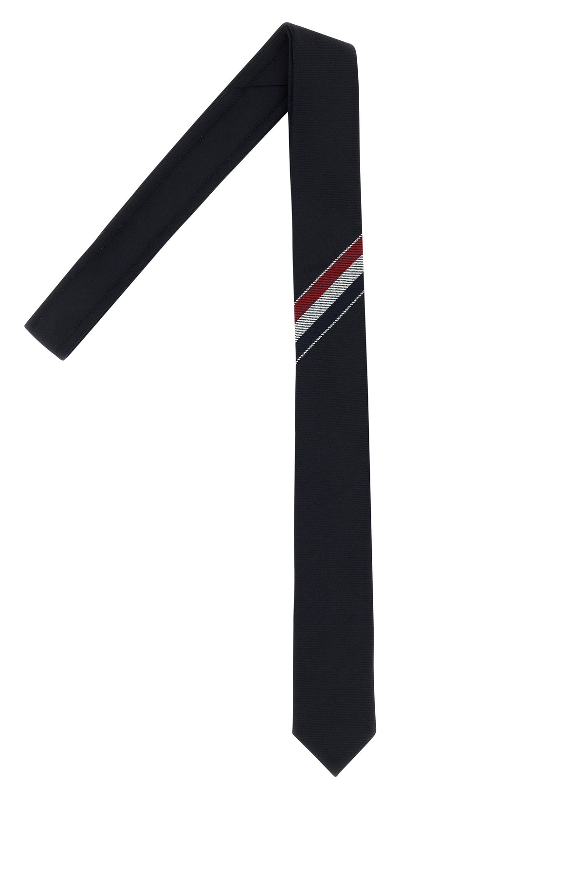 Tie realized in pure wool twill characterized by tricolor embroidery at the front.