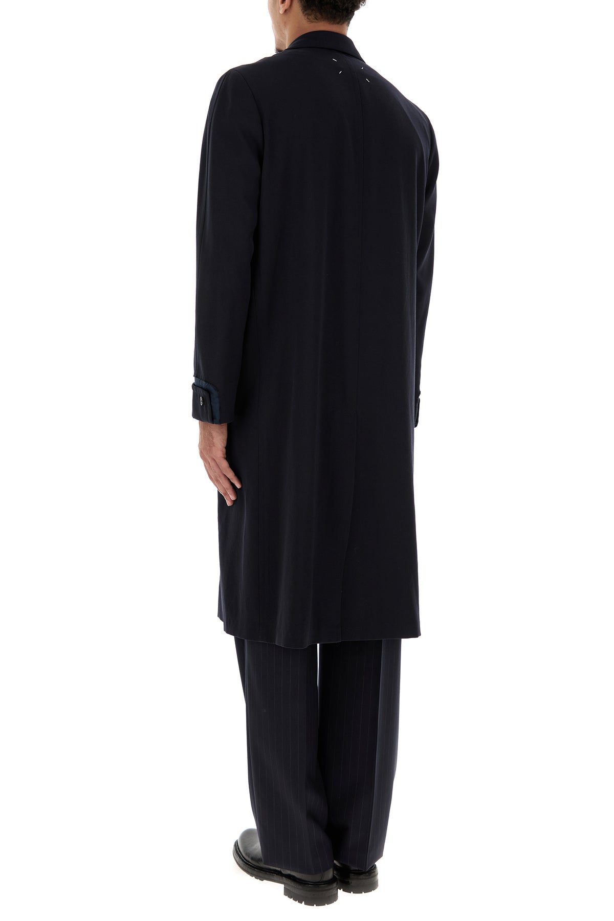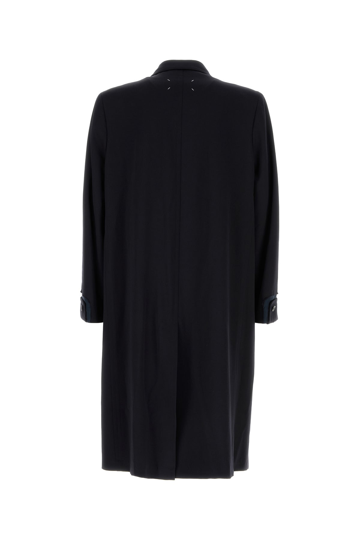 Coat realized in pure virgin wool characterized by iconic contrasting stitching at the back.