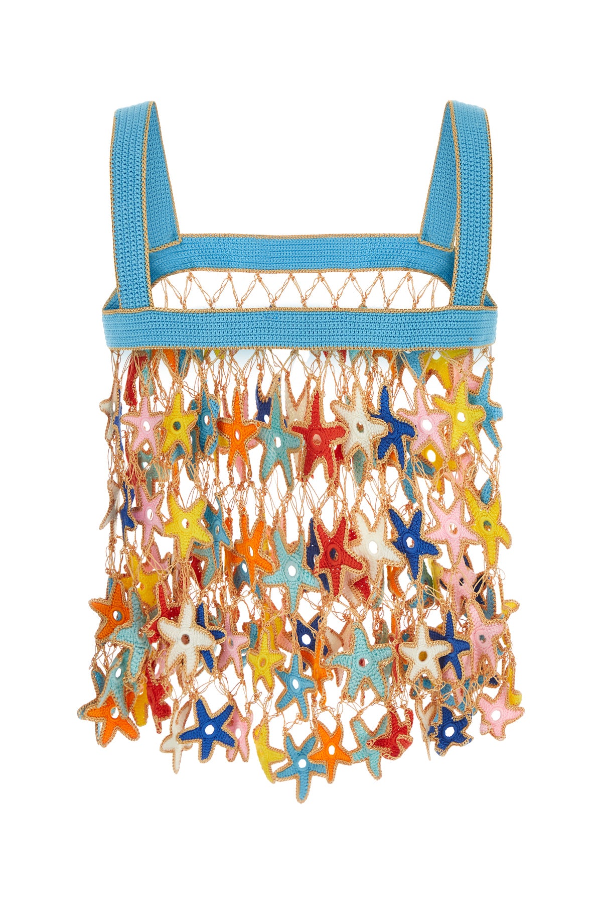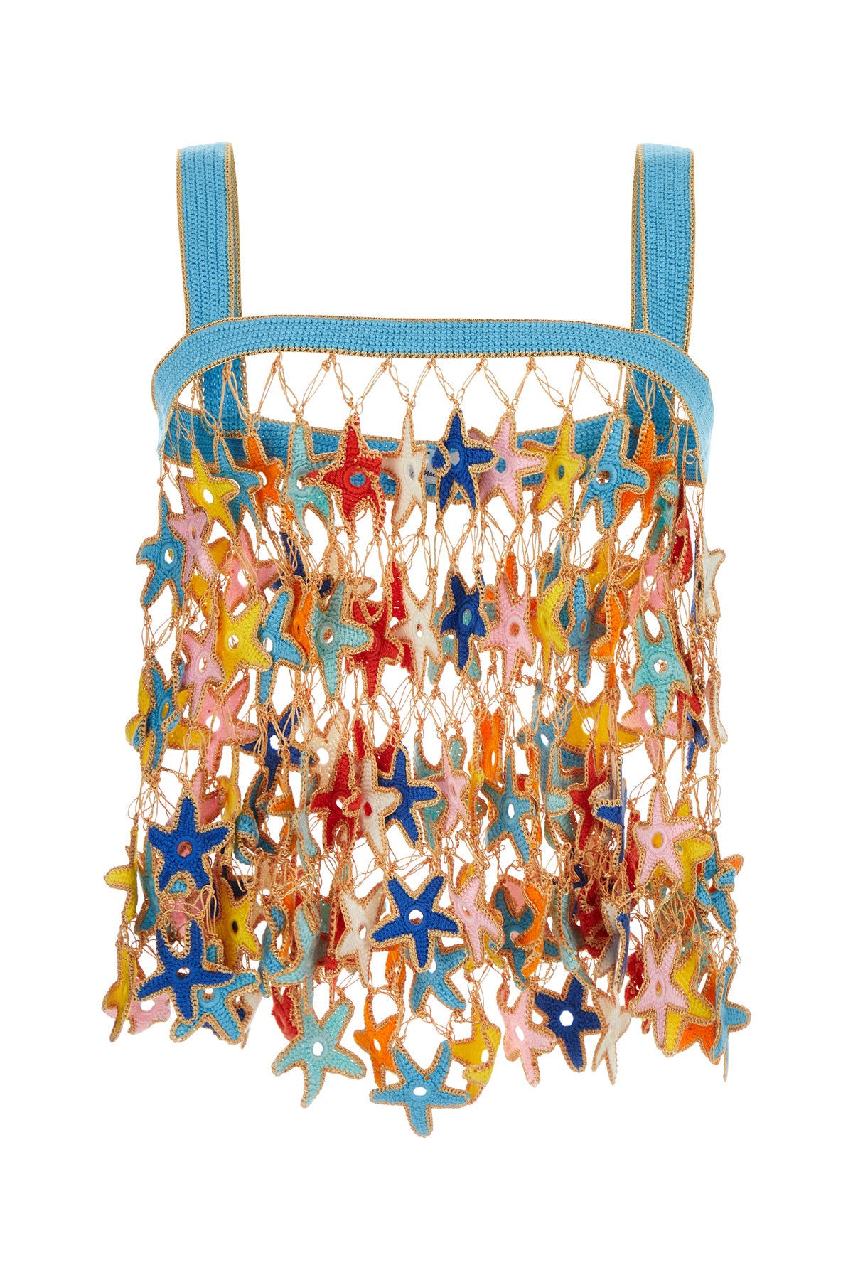 Top realized in crochet characterized by star-shaped patches on the entire surface.