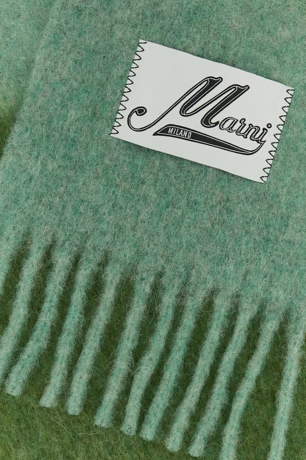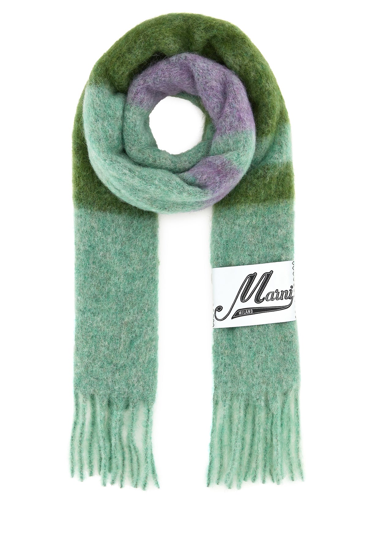 Scarf realized in mohair blend enriched by maxi logoed label at the front.