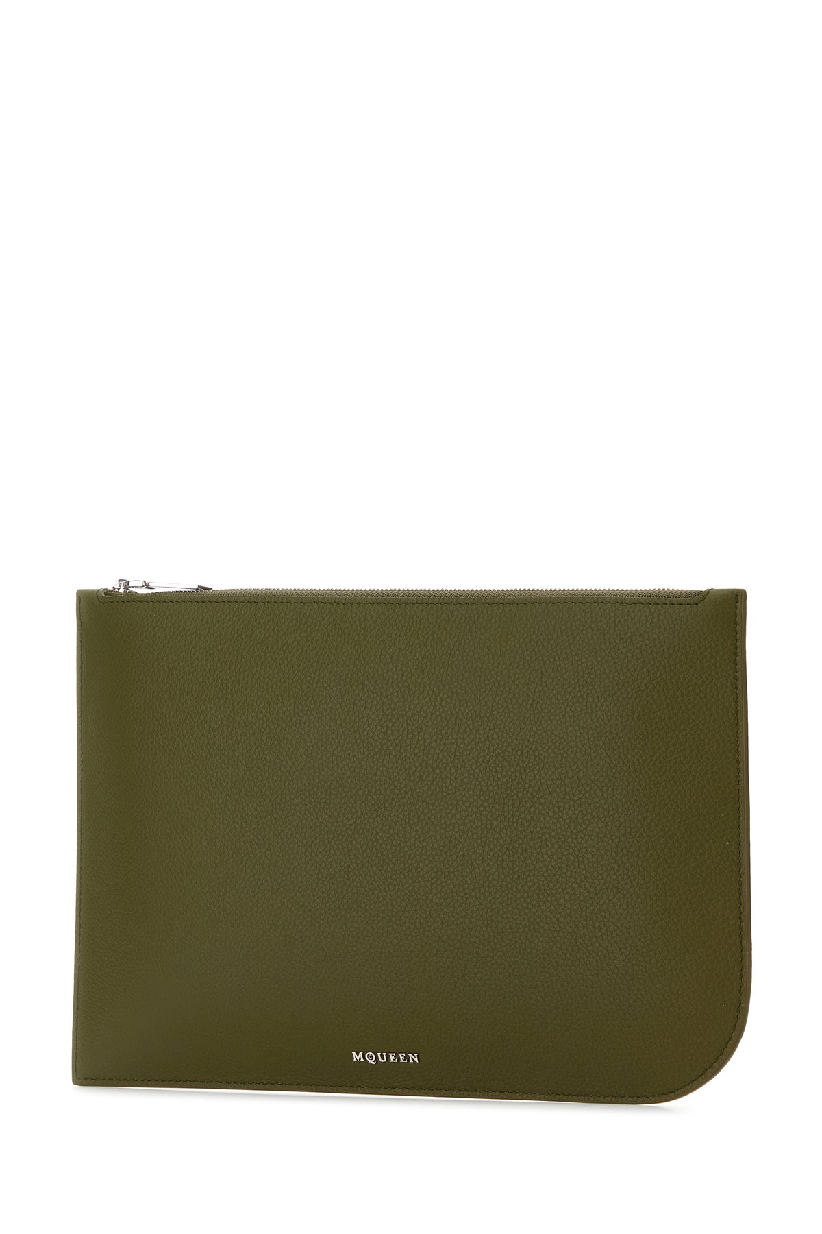 Pouch realized in pebble calf leather characterized by laminated printed logo at the front.