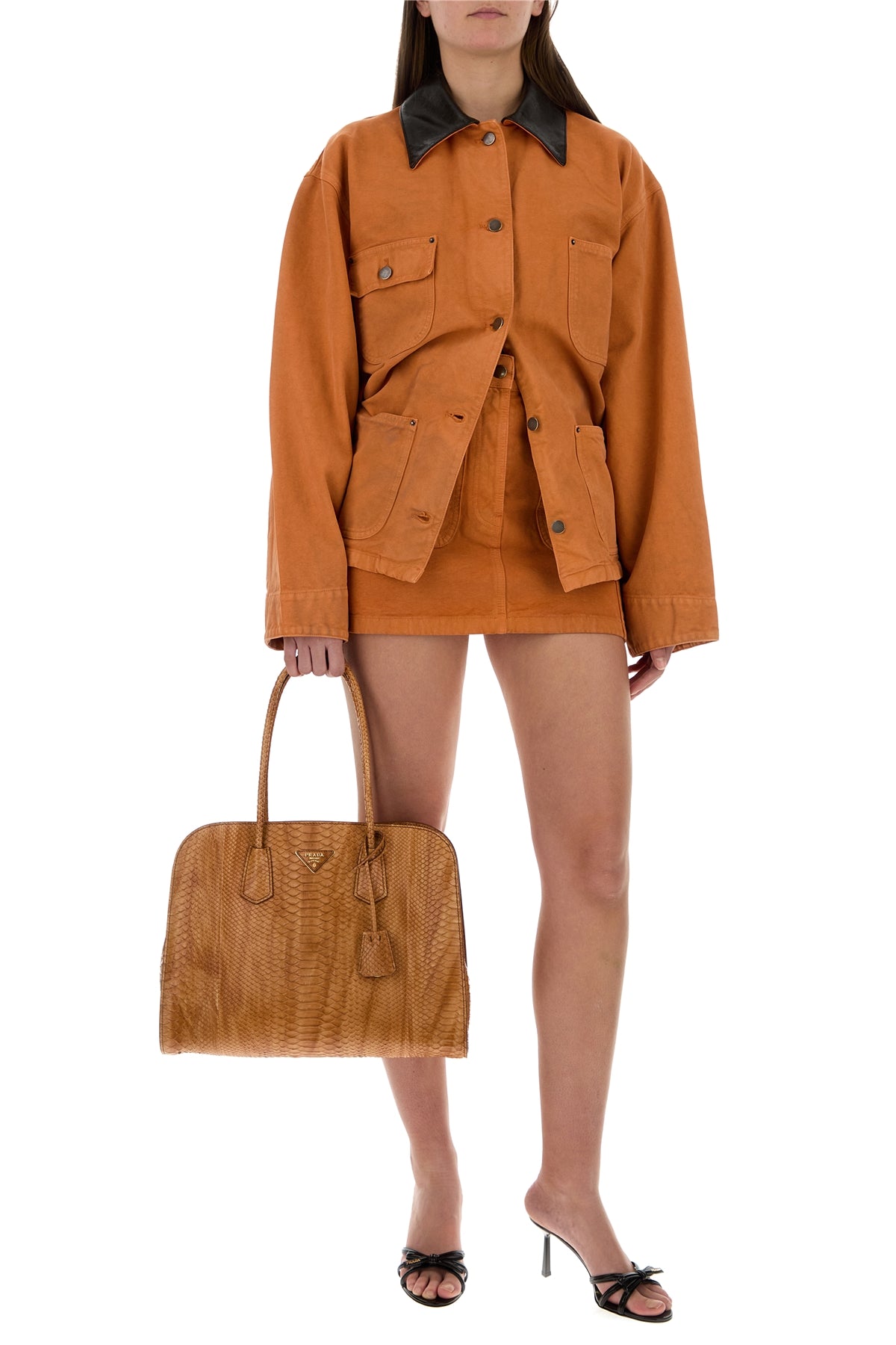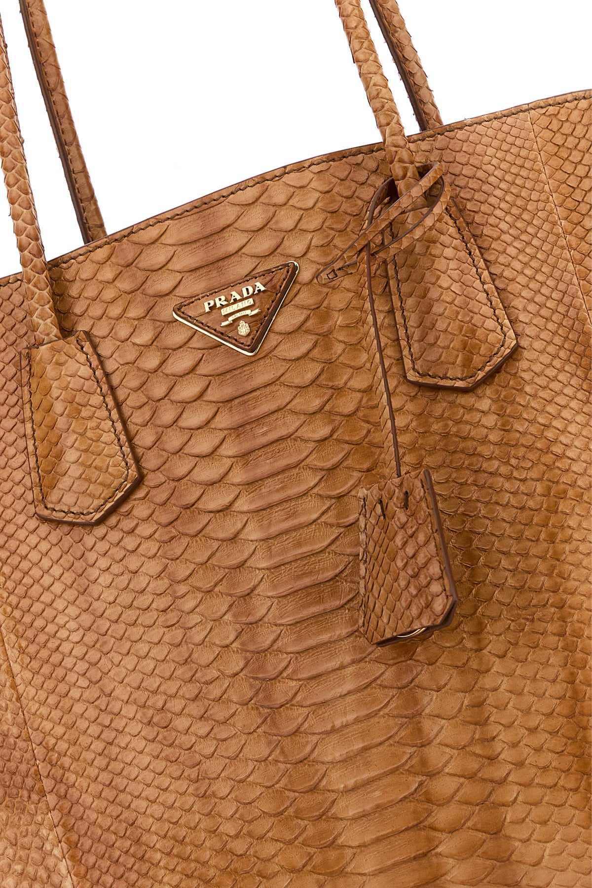 Shopping bag realized in python leather enriched by iconic logoed metal triangle at the front.