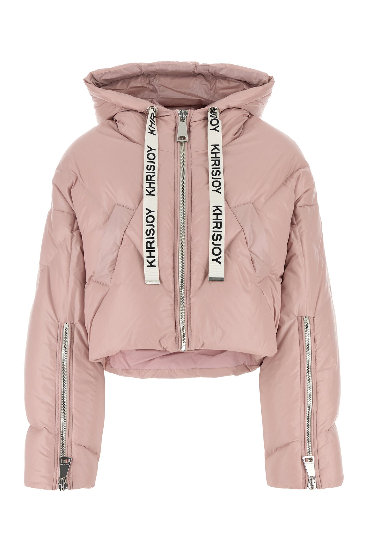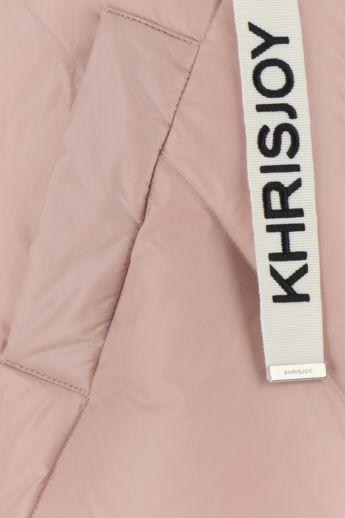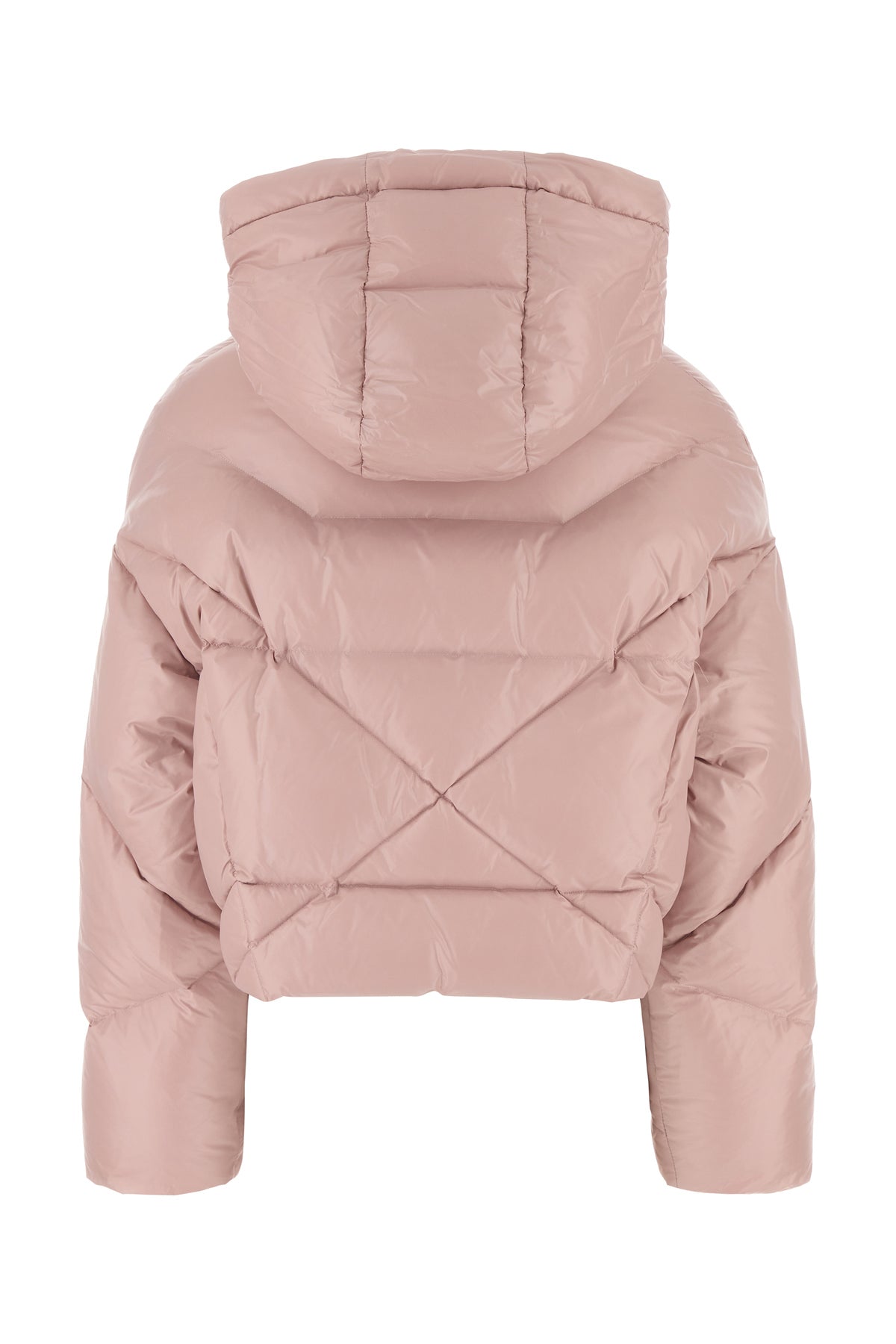 Cropped-cut down jacket realized in quilted nylon characterized by hood with maxi logoed drawstrings.