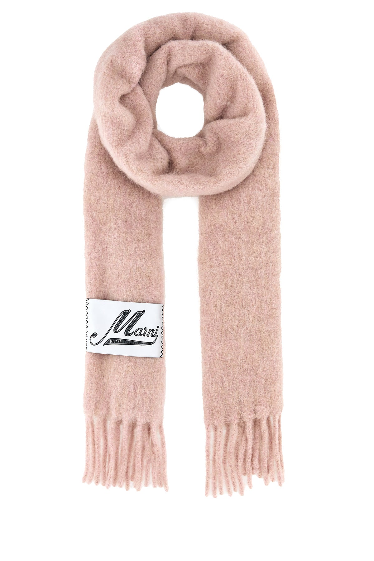 Scarf realized in alpaca blend enriched by maxi logoed label at the front.