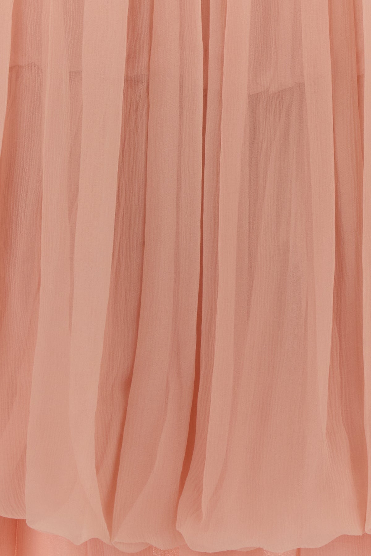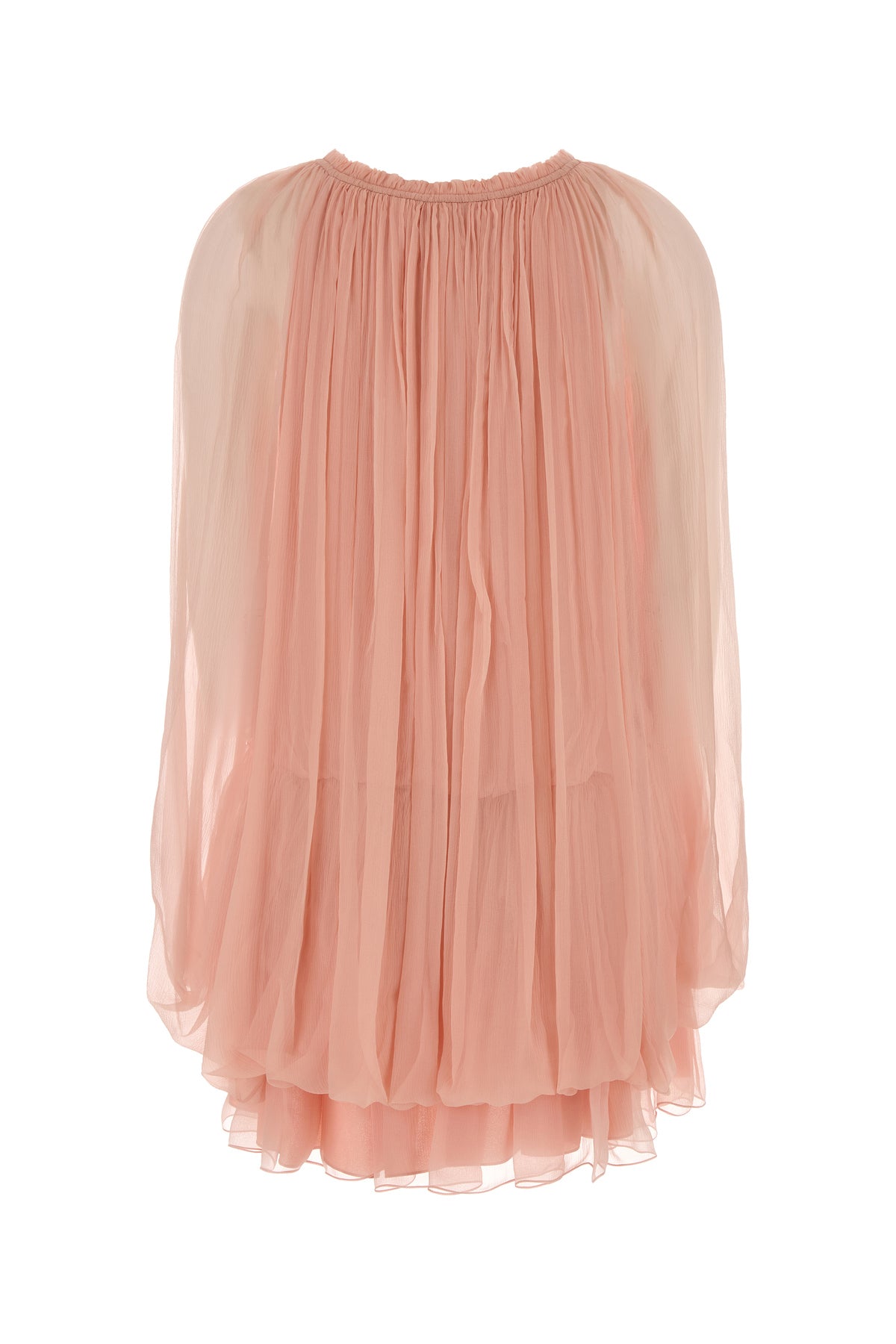 Mini dress realized in pure silk muslin enriched by tonal cape at the back.