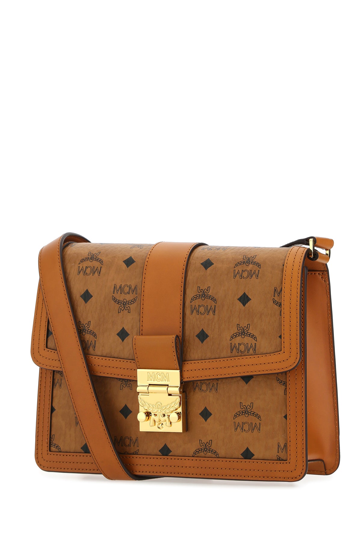 Crossbody bag realized in coated canvas with smooth leather trimmings characterized by Visetos print on the entire surface.