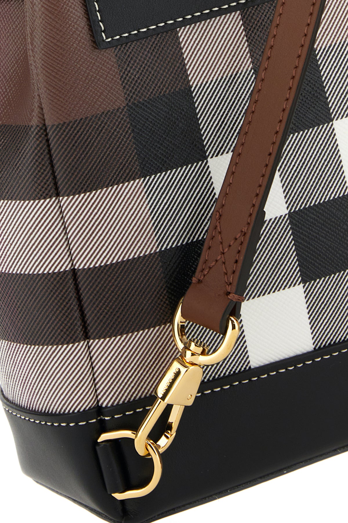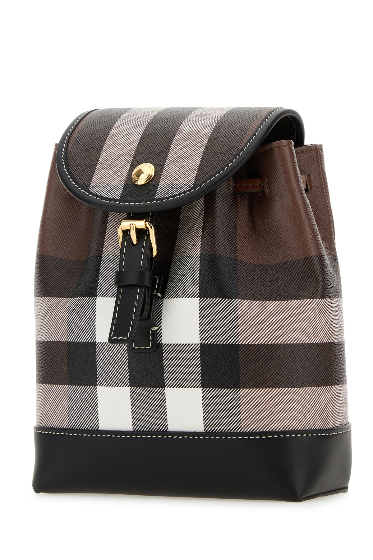 Backpack realized in coated canvas with leather inserts characterized by Check print on the entire surface enriched by logoed metal detail at the front.