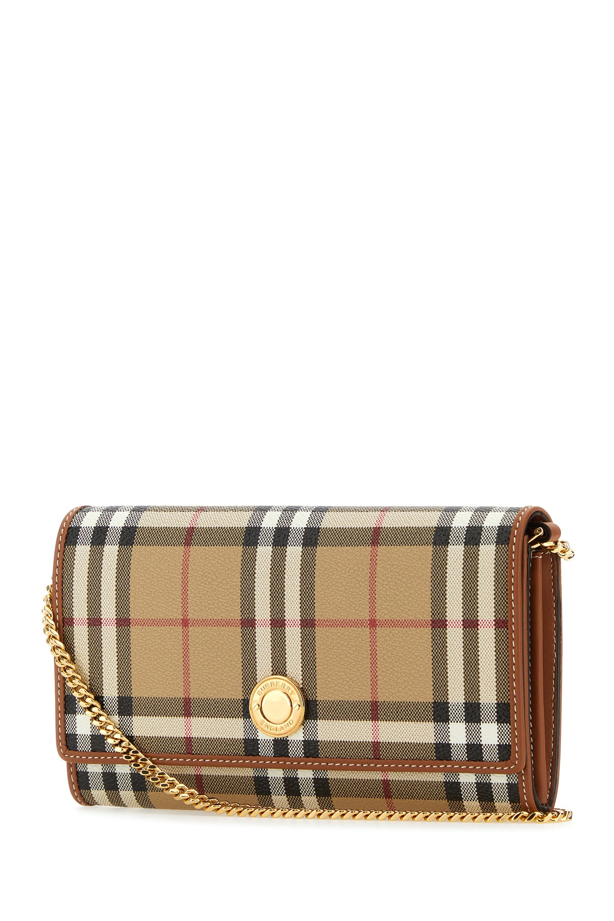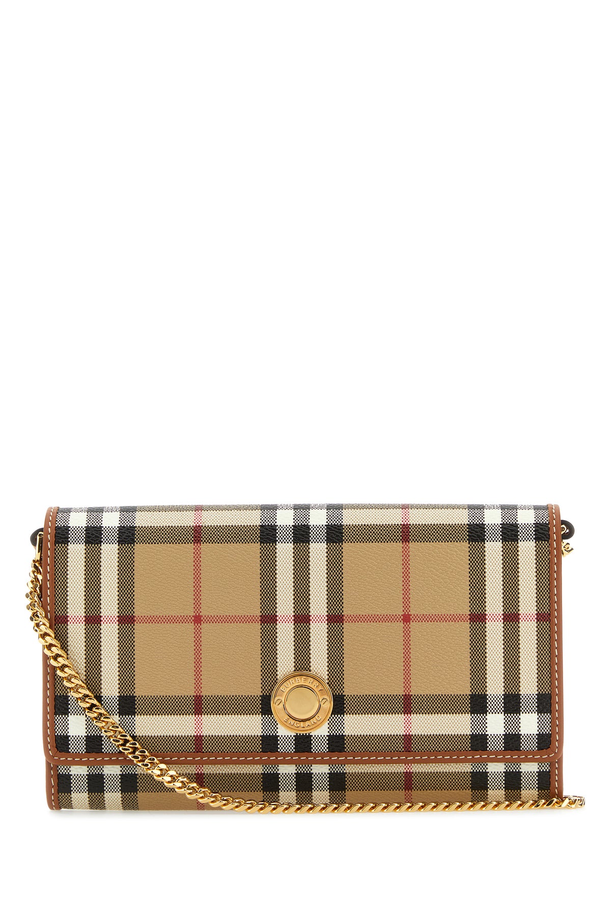 Wallet realized in coated canvas characterized by Burberry Check print on the entire surface enriched by logoed metal detail at the front.