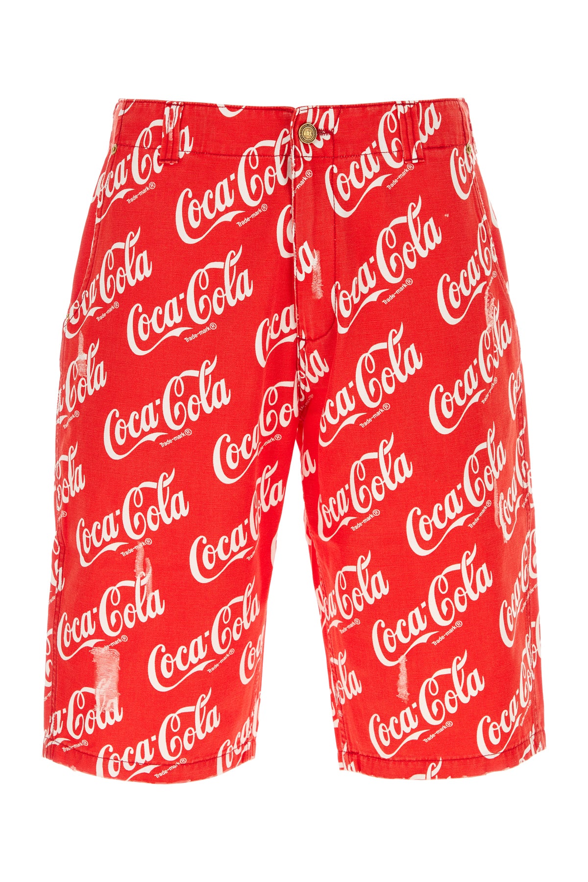 Bermuda shorts realized in collaboration with CocaCola realized in distressed pure cotton denim characterized by logoed print on the entire surface.