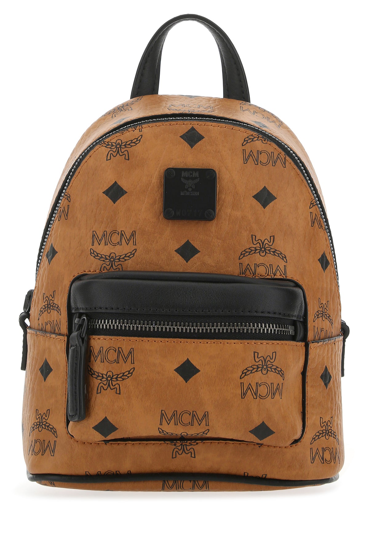 Handbag realized in pebble leather characterized by Visetos print on the entire surface enriched by logoed plate at the front.