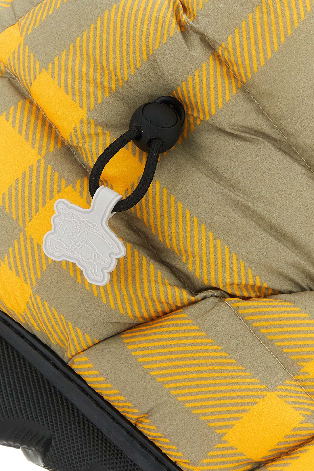 Ankle boots realized in polyester characterized by Check print on the entire surface enriched by rubber Equestrian Knight charm on the side.