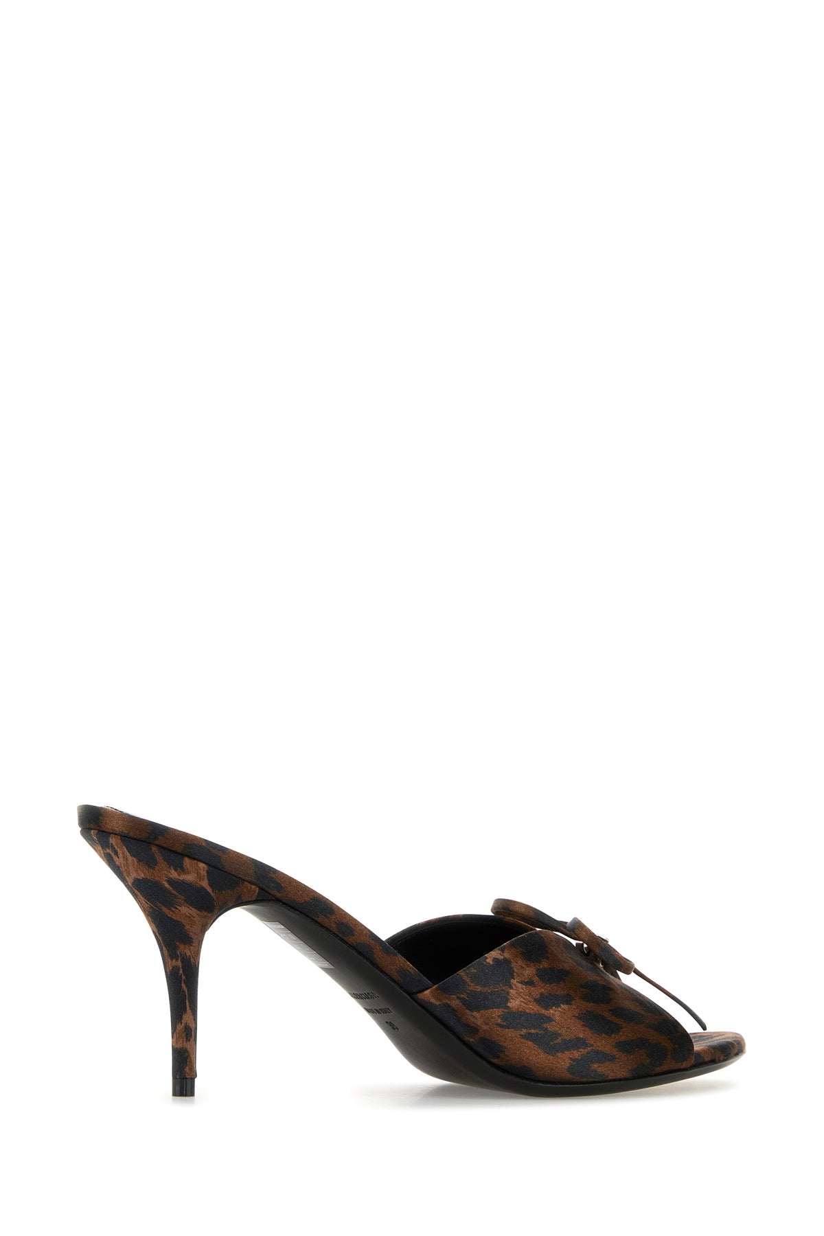 Mules realized in satin characterized by Leopard print on the entire surface enriched by decorative bow with metal BB detail at the front.