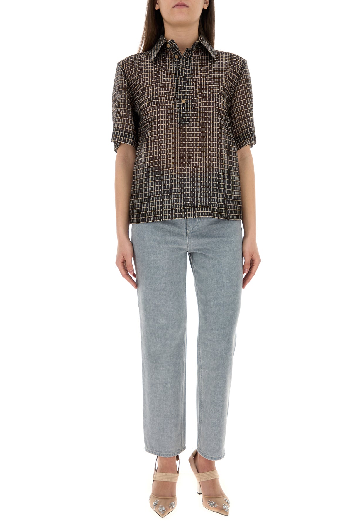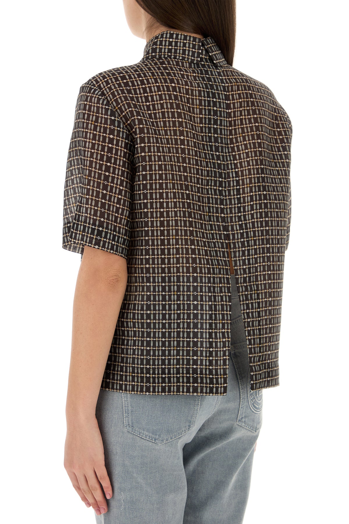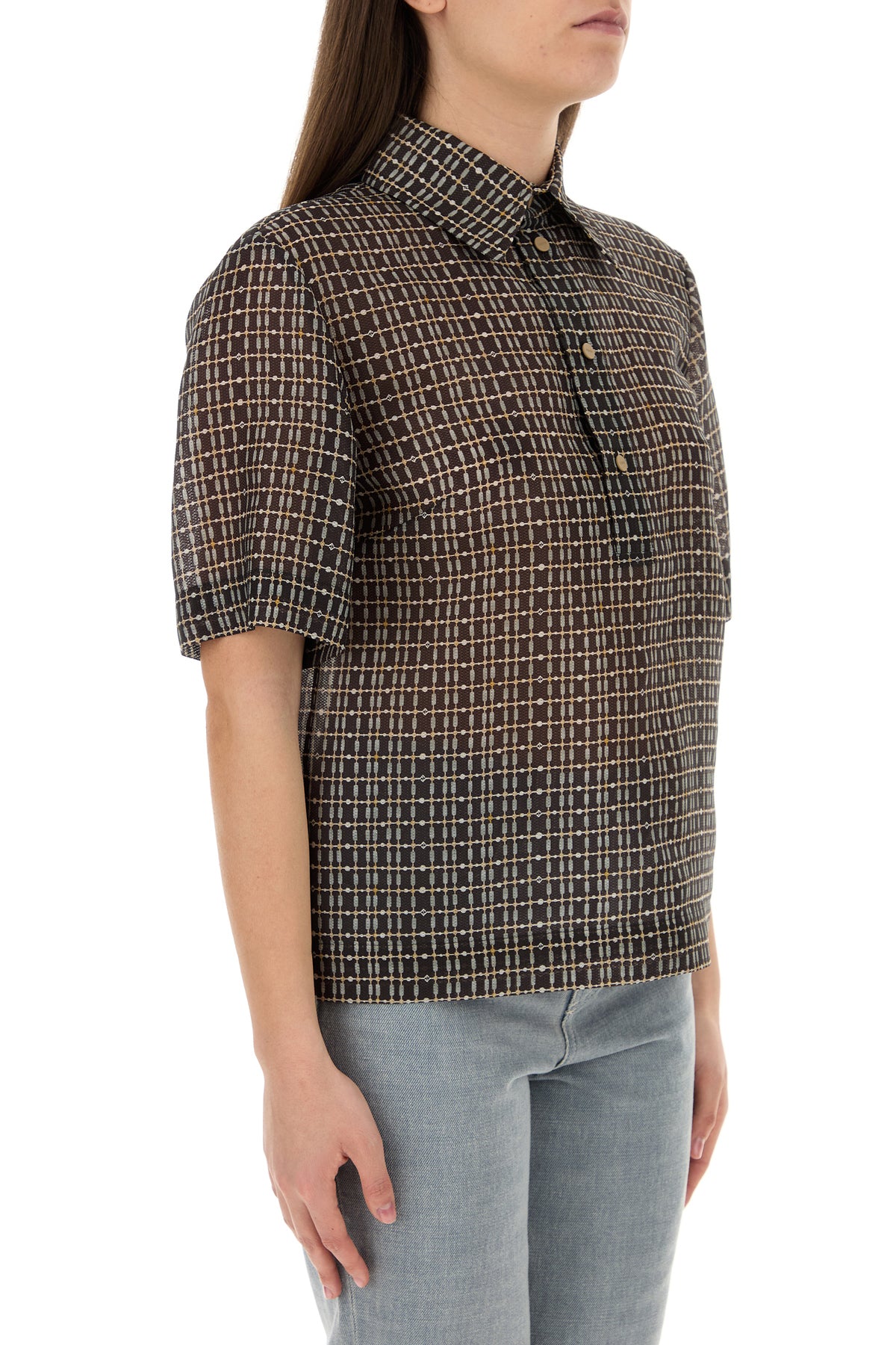 Polo shirt realized in silk blend characterized by peculiar checked print on the entire surface.