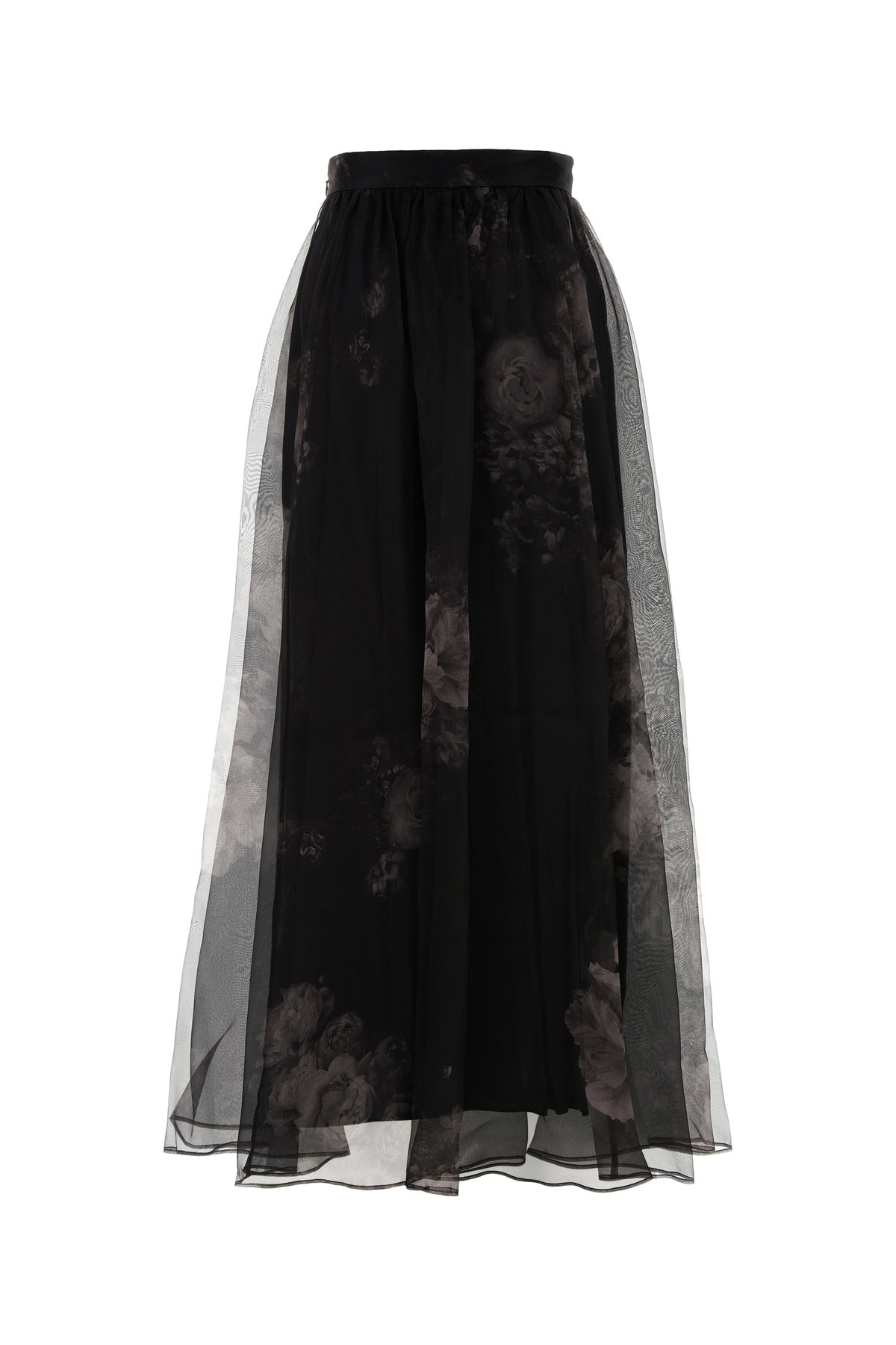 Flared skirt realized in pure silk characterized by floral print on the entire surface.